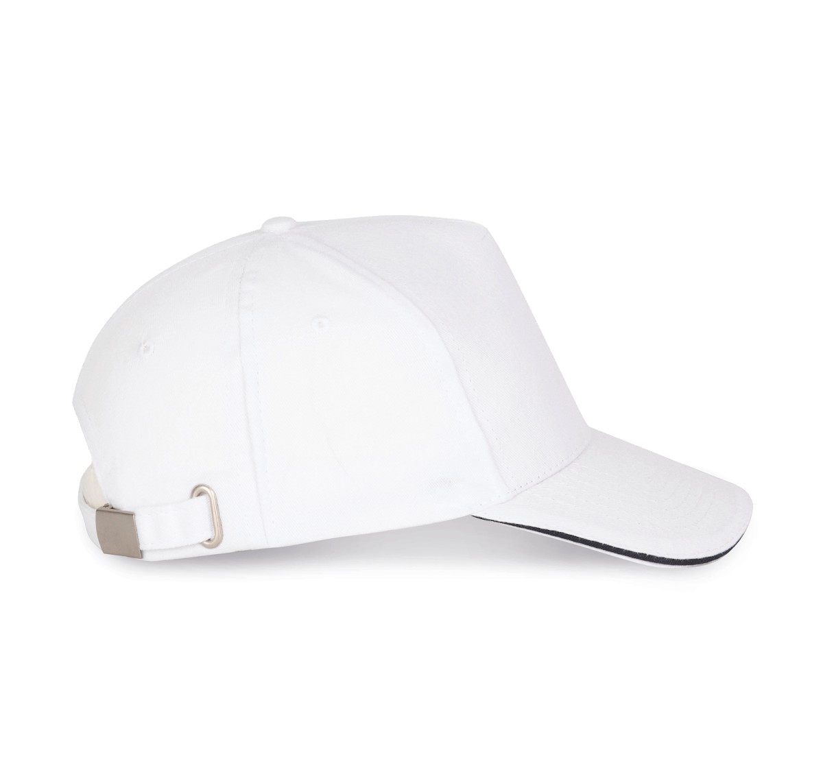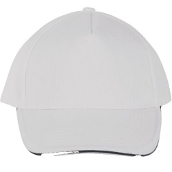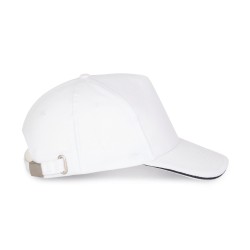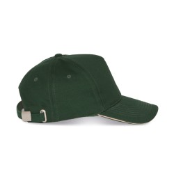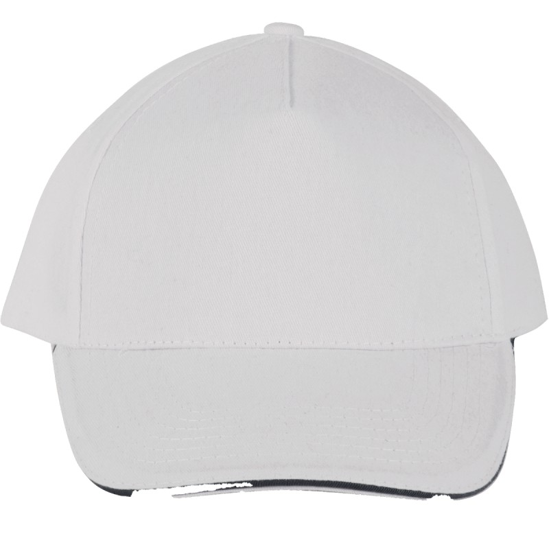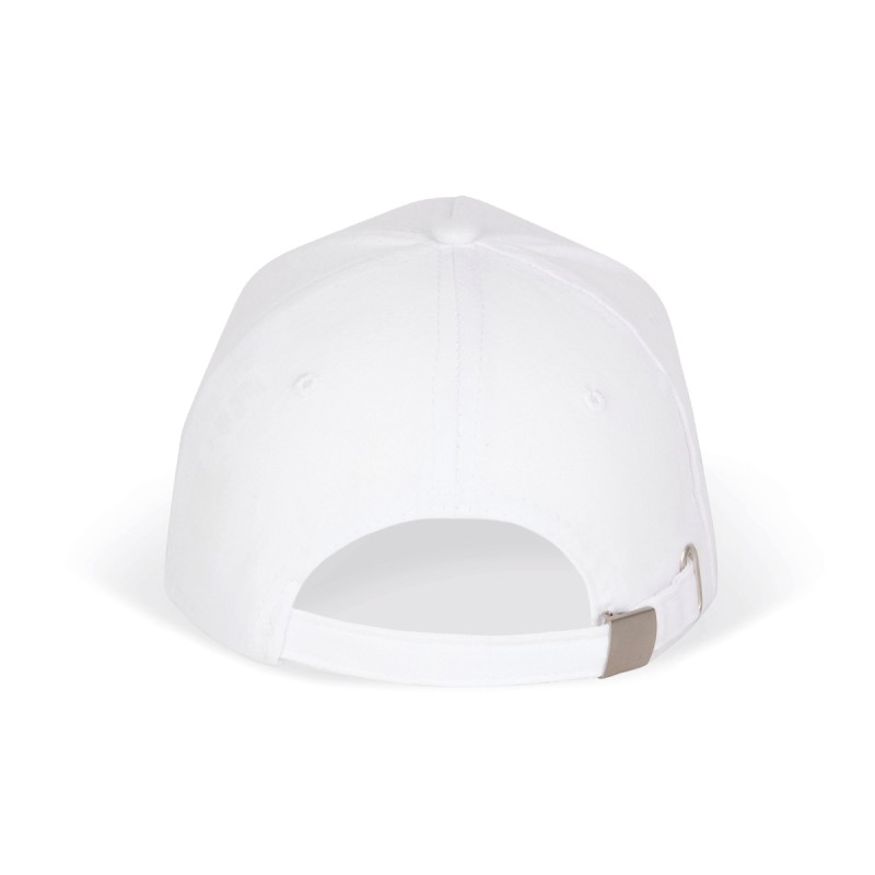 100% coton sergé brossé épais. 5 panneaux. Sandwich contrasté. Bande de transpiration doublée en coton. Fermeture arrière réglable par boucle métallique.
