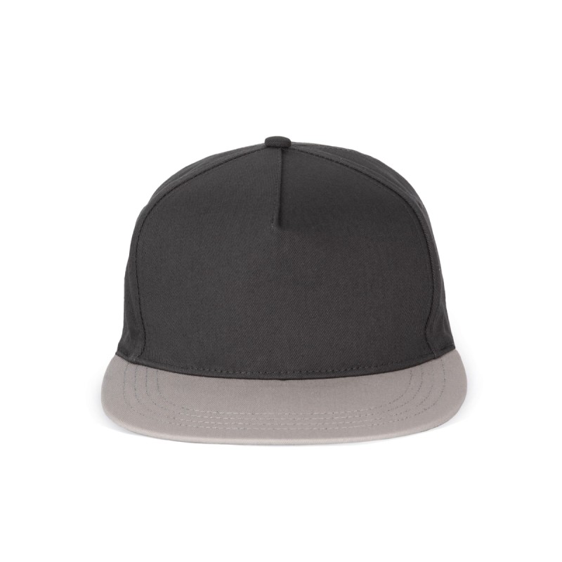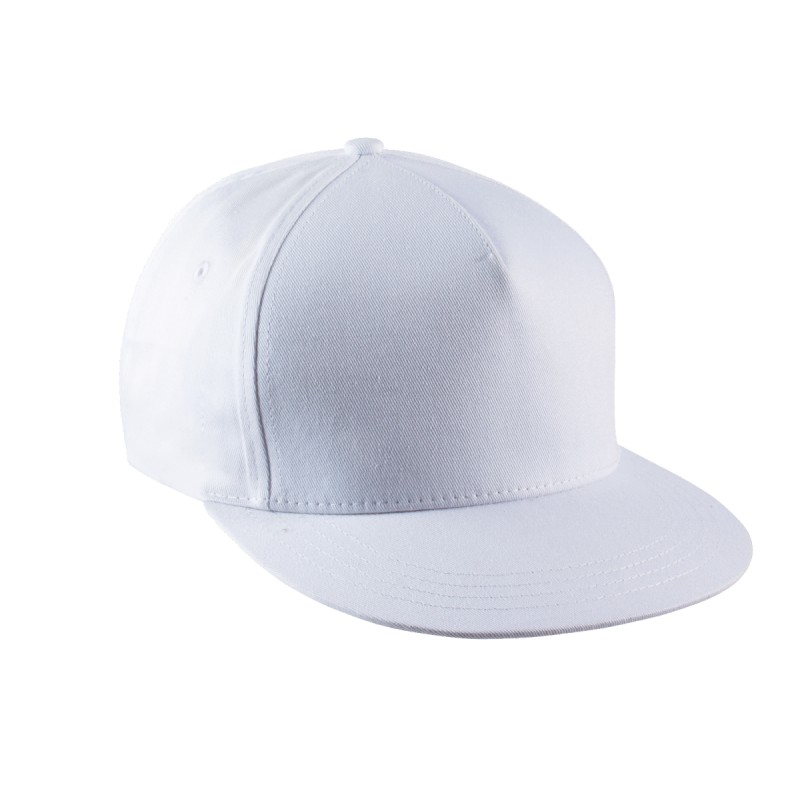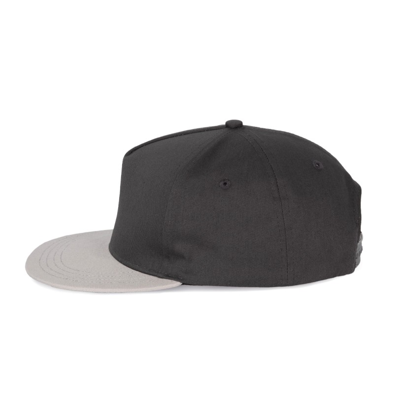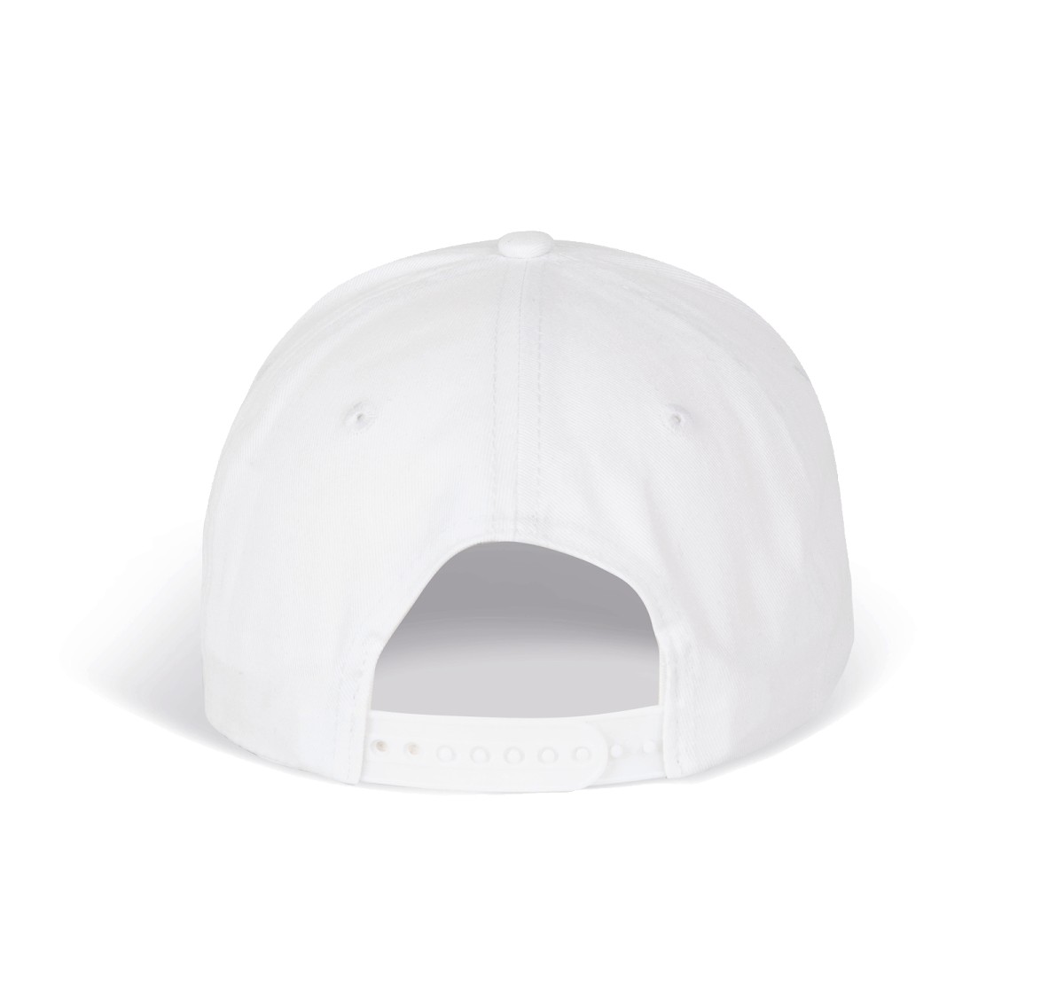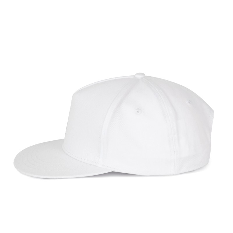 100% coton sergé. 5 panneaux. Visière plate. Languette de réglage en plastique.
