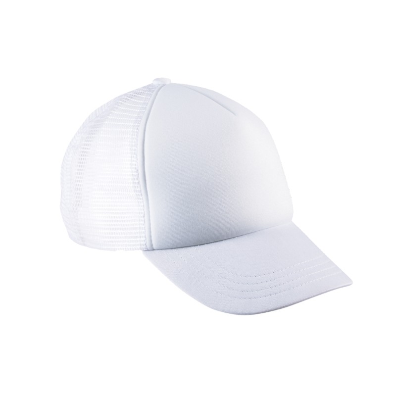 100% polyester avec filet à l'arrière en polyester. 5 panneaux. Personnalisation facile sur le panneau avant. Languette de réglage en plastique. Tour de tête : 53 cm.