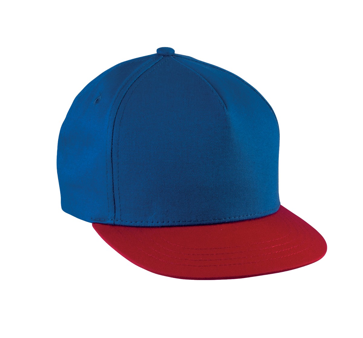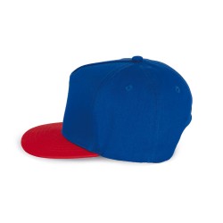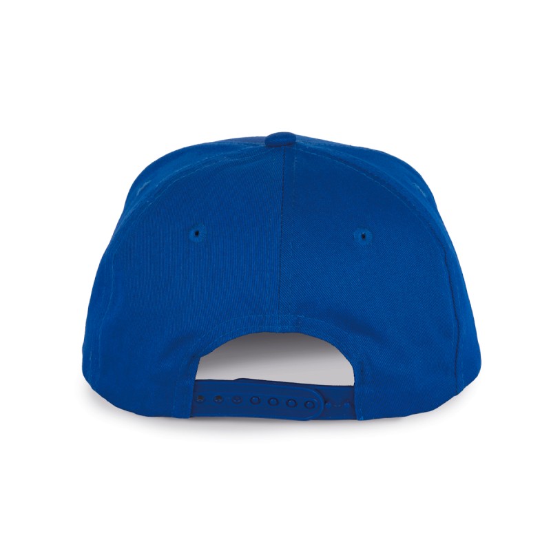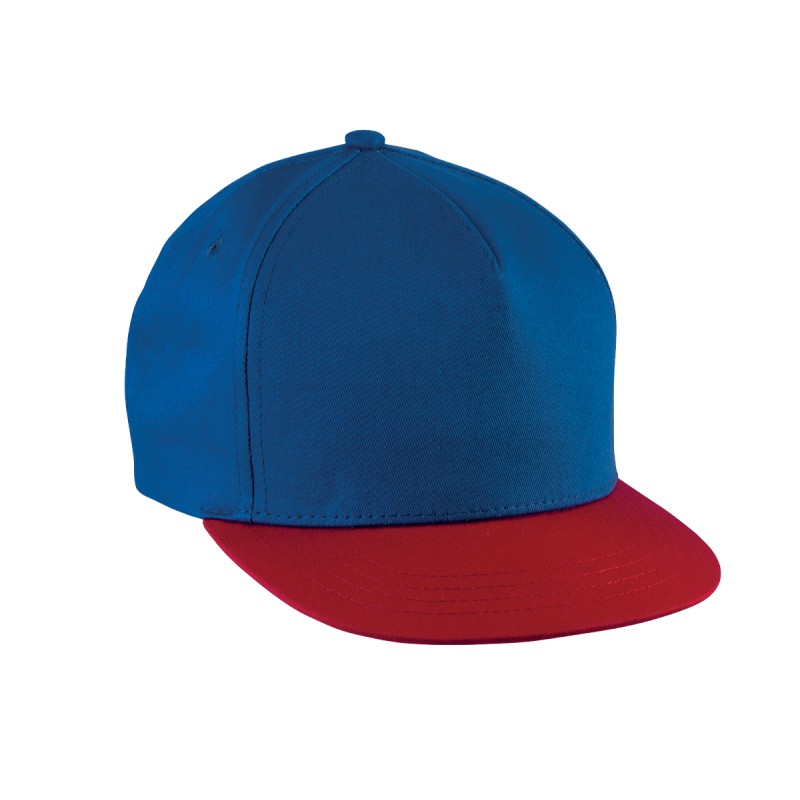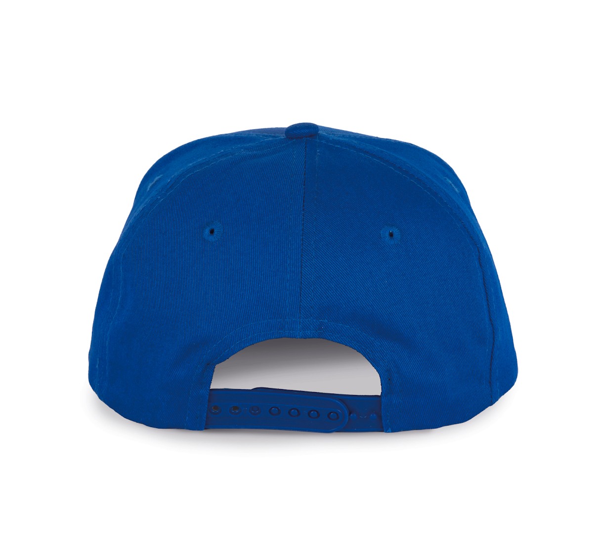 100% coton sergé. 5 panneaux. Visière plate. Languette de réglage en plastique. Tour de tête : 53 cm.