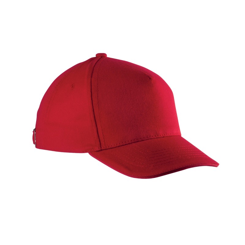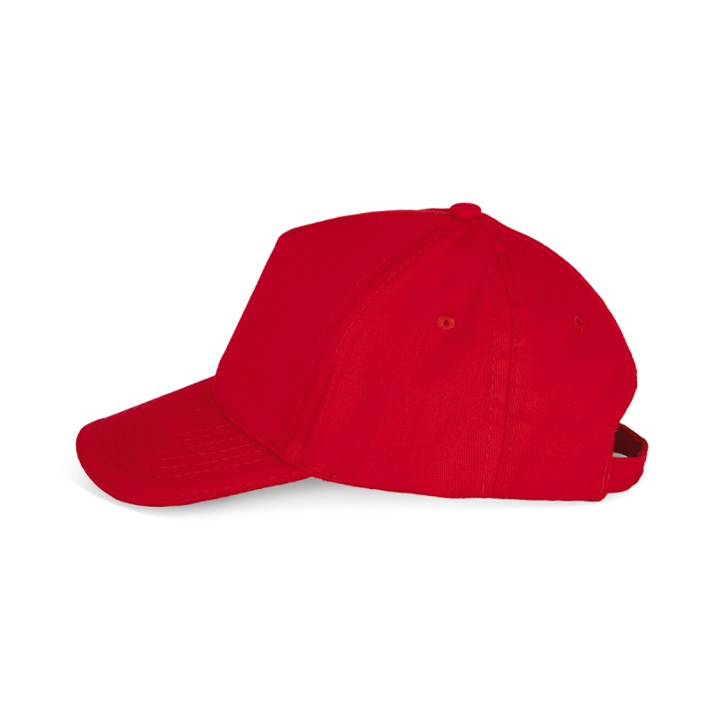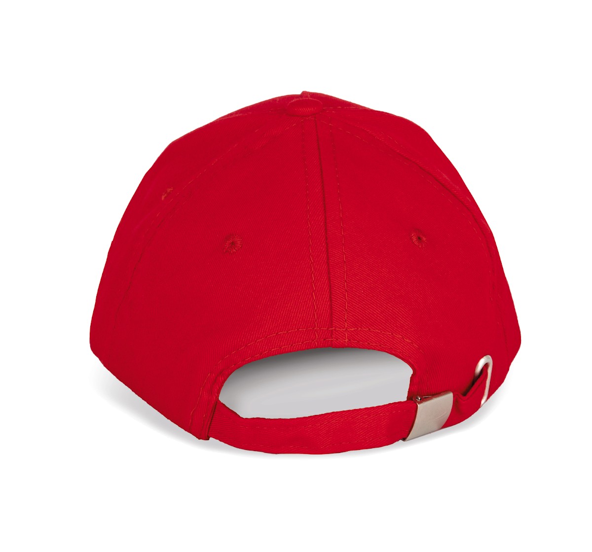 100% coton sergé brossé. 5 panneaux. Sandwich contrasté. Fermeture arrière réglable par boucle métallique. Tour de tête : 53 cm.