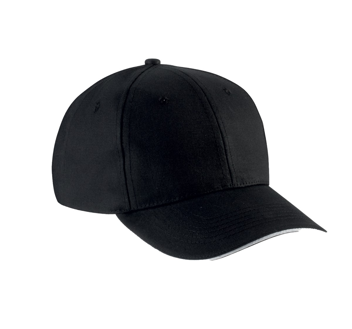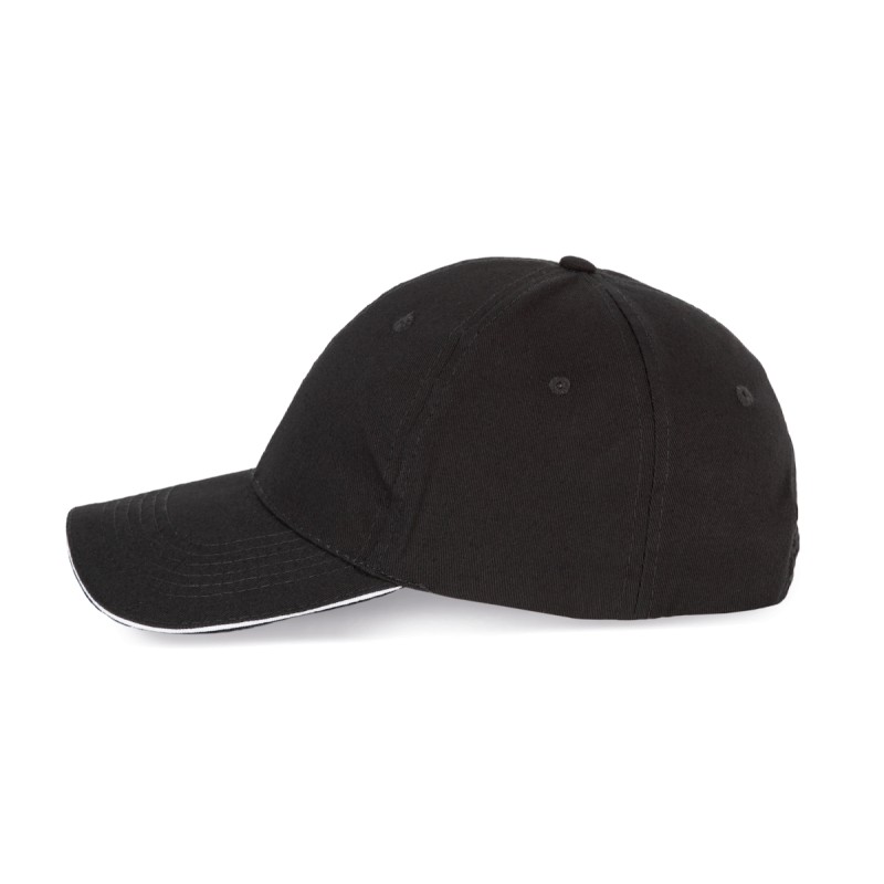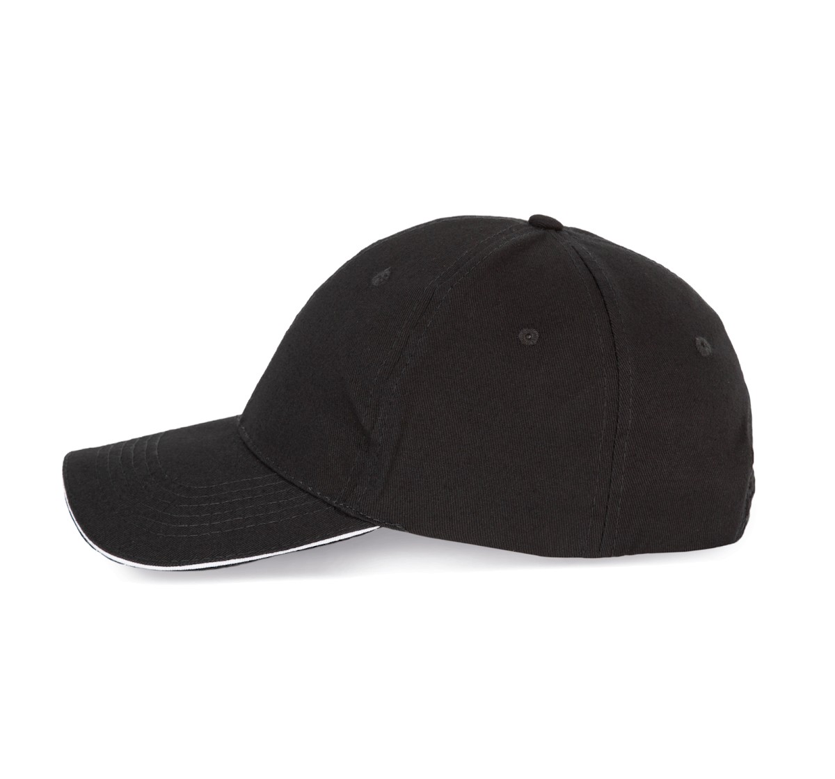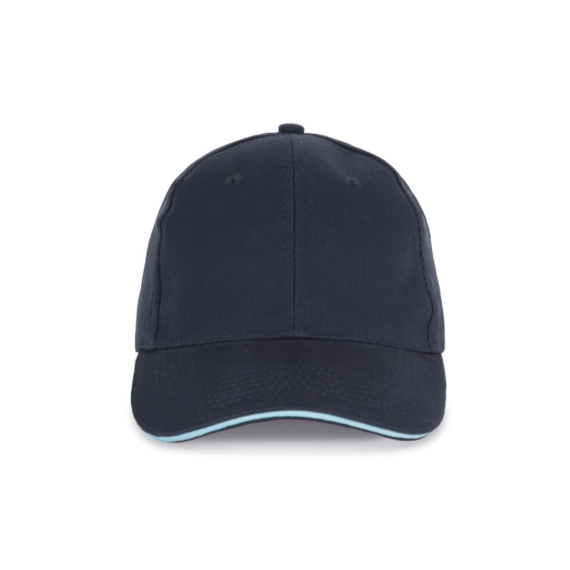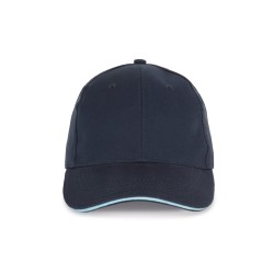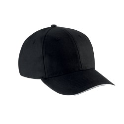 100% coton sergé. 6 panneaux. Sandwich contrasté. Fermeture arrière réglable avec boucle métallique.
