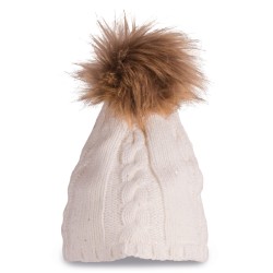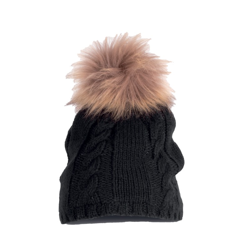Bonnet en maille tricot 100% acrylique avec pompon en polyester.
