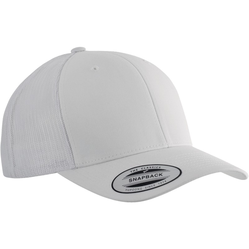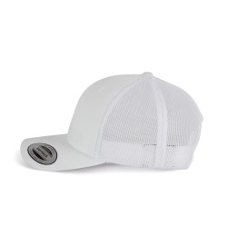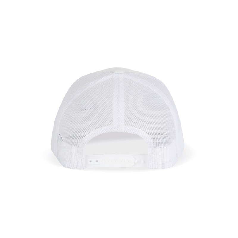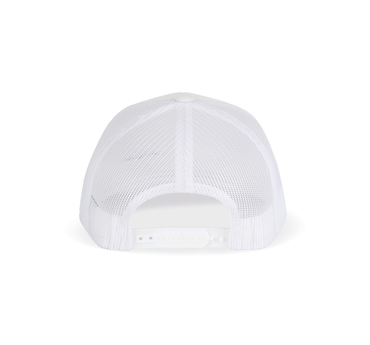 60% coton / 40% polyester. 6 panneaux. Modèle Trucker rétro de haute qualité avec visière mi-profil et panneaux avants rigidifiés de même couleur. Languette de règlage en plastique.