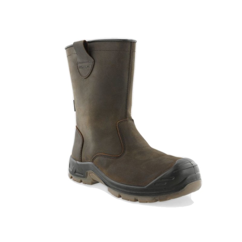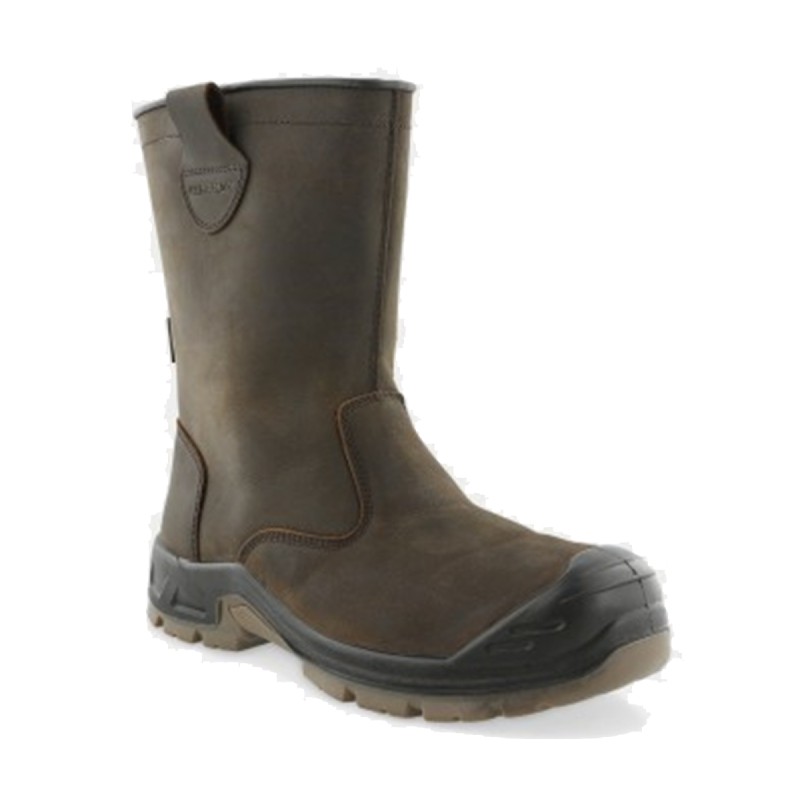 Bottes de sécurité étanches en cuir pleine fleur. Embout : Embout composite 200J. Semelle intermédiaire : Semelle anti-perforation non métallique. Semelle intérieure : Semelle ergonomique haute confort avec soutien de la voûte plantaire et du talon.