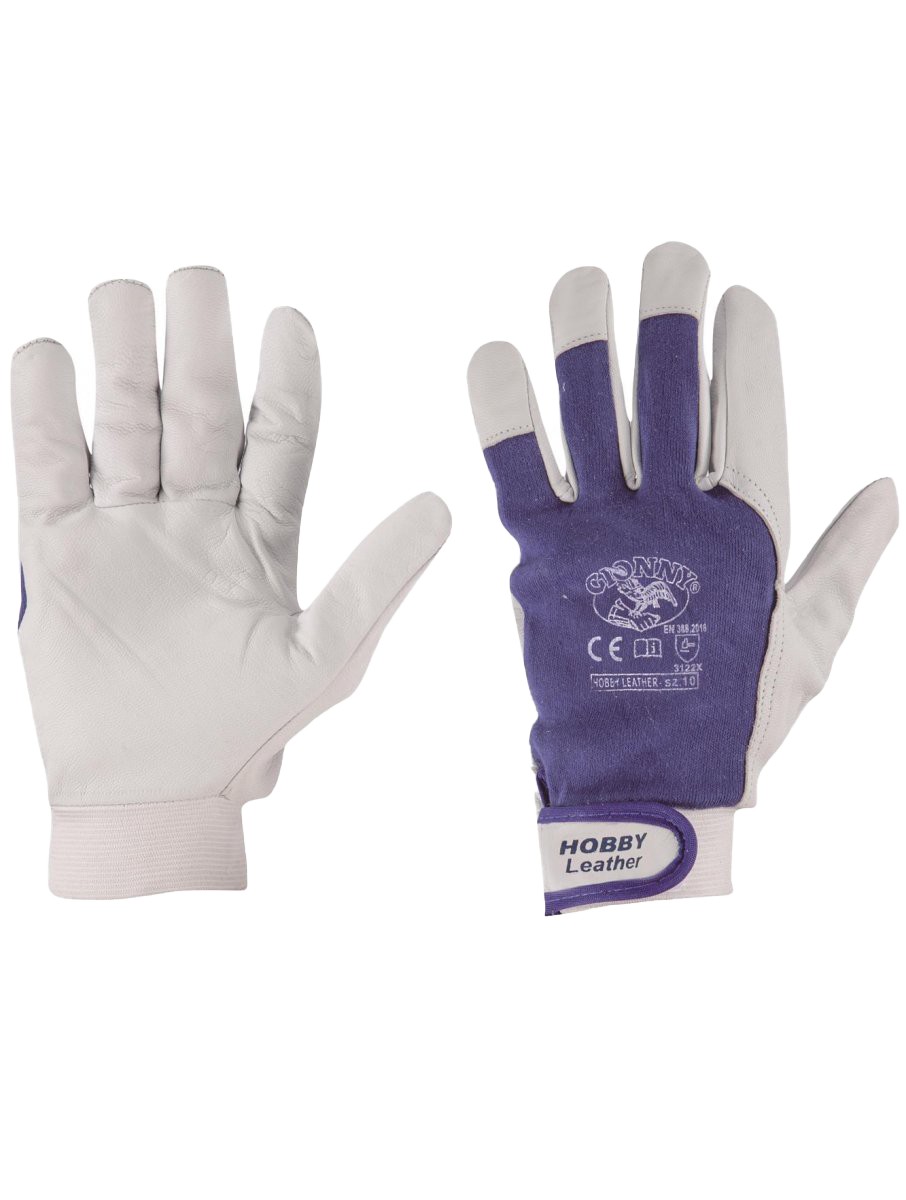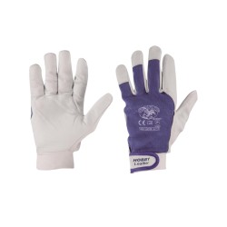 Gants avec paume en cuir fleur blanc - dos élastique et d'une autre couleur pour chaque taille - fermeture velcro. - Caractéristiques: souple - Atouts: confort, dextérité, sensibilité - Utilisations: manipulations fines de précision en milieu sec