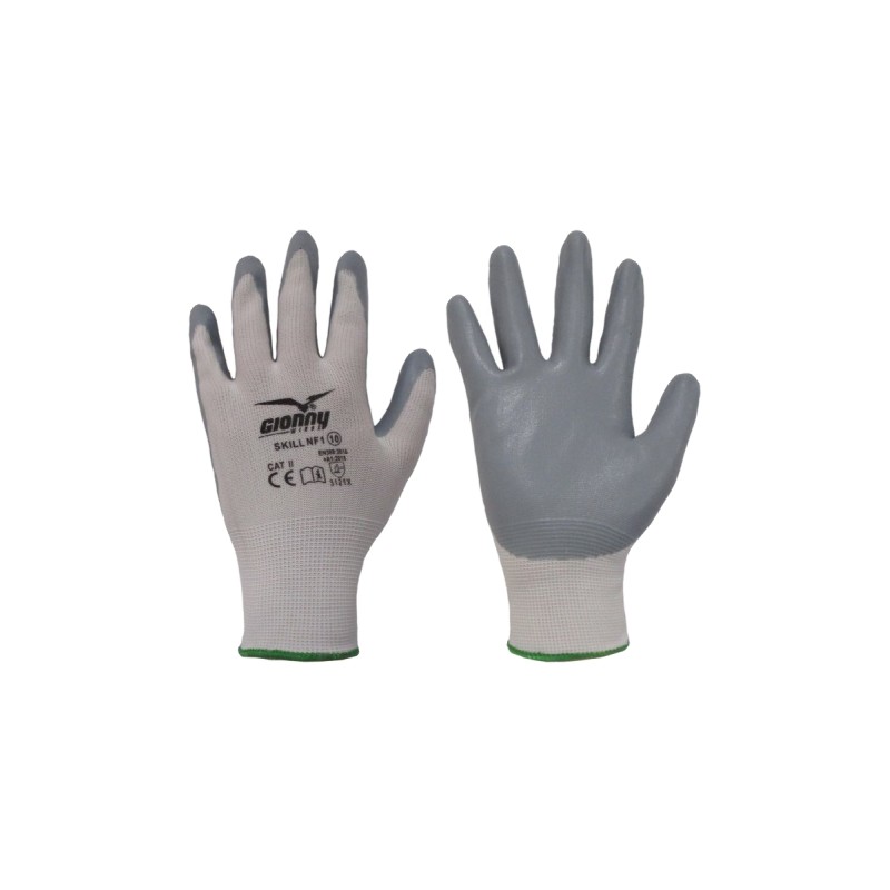 Gants enduits mousse de nitrile, dos aéré, poignet en tricot, polyester 13G - Caractéristiques: très résistant - Atouts: confort, résistant à la coupe, préhension, sensibilité, précision, résistant aux liquides - Utilisations: applications fines, délicates, assemblages et manipulations de précision aussi bien en milieu sec qu’en milieu humide en présence d’hydrocarbures, de lubrifiants. Unité minimum commercialisable : 1 douzaine (12 paires). Le bord sera de couleur différente selon la taille.