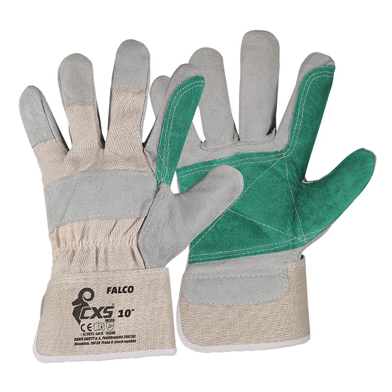 Gants de travail Doubles surpiqûres sur la paume Doublure en coton dans la paume et les doigts Longueur : 26 cm Croûte de cuir de vache / Coton EN 420 EN 388 Catégorie 2 Classe : 2534B Pour travaux lourds milieu sec