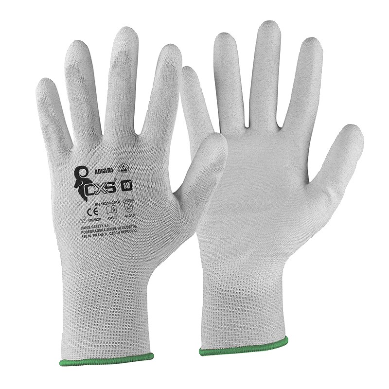 Gants de travail Paume et doigts enduits de polyuréthane Antistatiques et ESD Résistance interne résultat : Rv 1 x 10^8 Polyester fibre de carbone et polyuréthane EN 420 EN 388 EN 16350 Catégorie 2 Classe : 4131X Pour travaux légers milieu sec