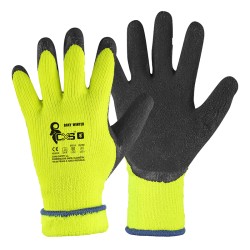 Gants de travail hiver Paume et doigts enduits de mousse de latex Finition antidérapante froissée Résistant jusqu'à 250°C Tricotés sans couture Longueur : 24-27 cm EN ISO 21420 EN 388 EN 511 EN 407 Jauge : 7 Catégorie 2 Classe : 2231X / X2X / X2XXXX Pour travaux lourds milieu légèrement humide chaud ou froid