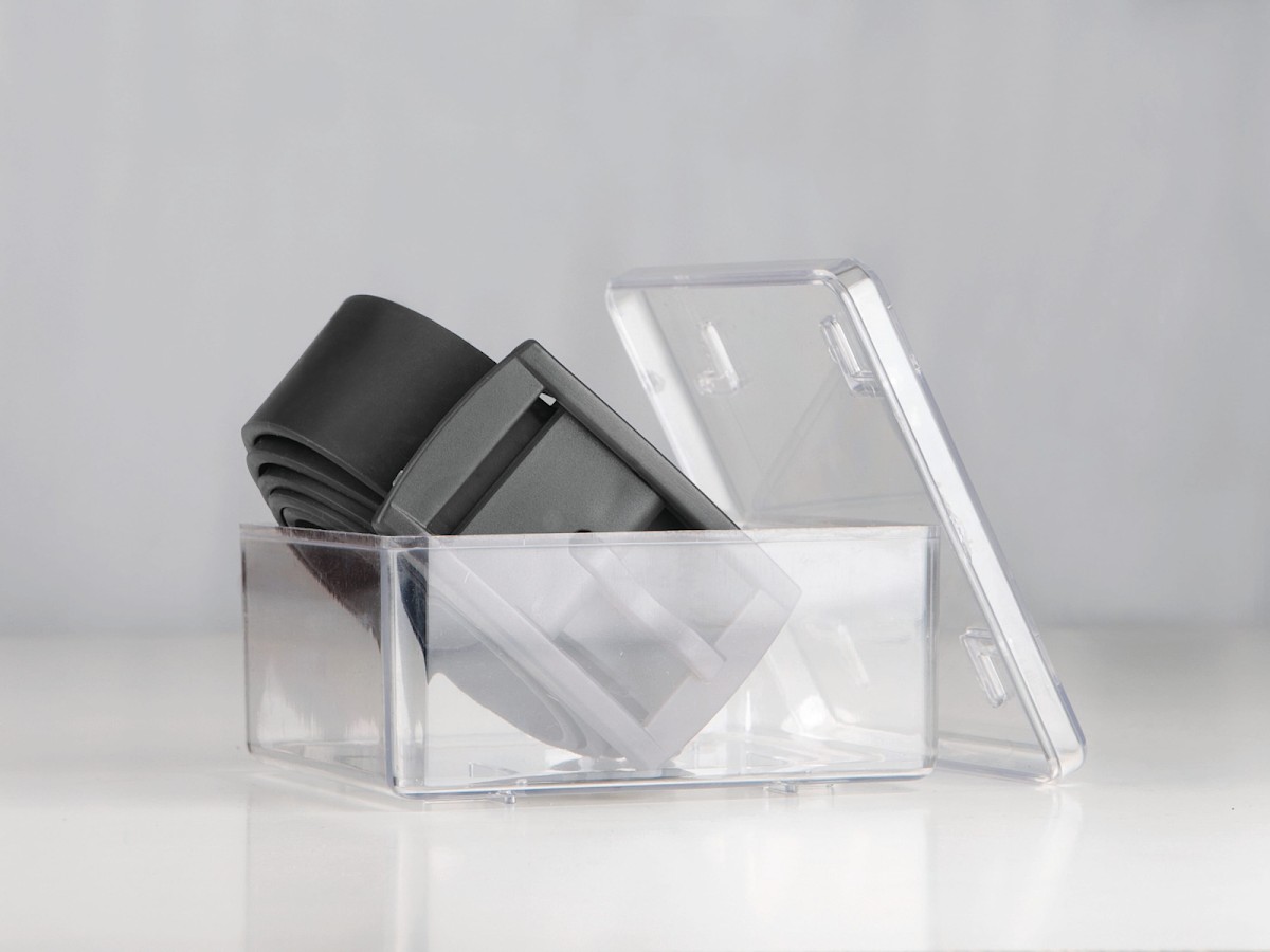100% thermoplastique élastomère. Boucle en plastique transparent. Longueur réglable du XS au 3XL. Livrée dans sa boîte en plastique rigide.