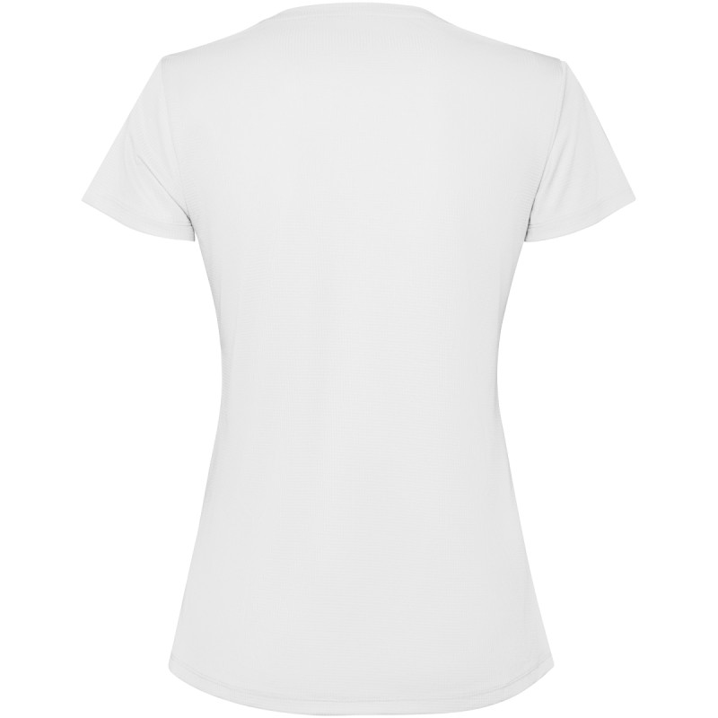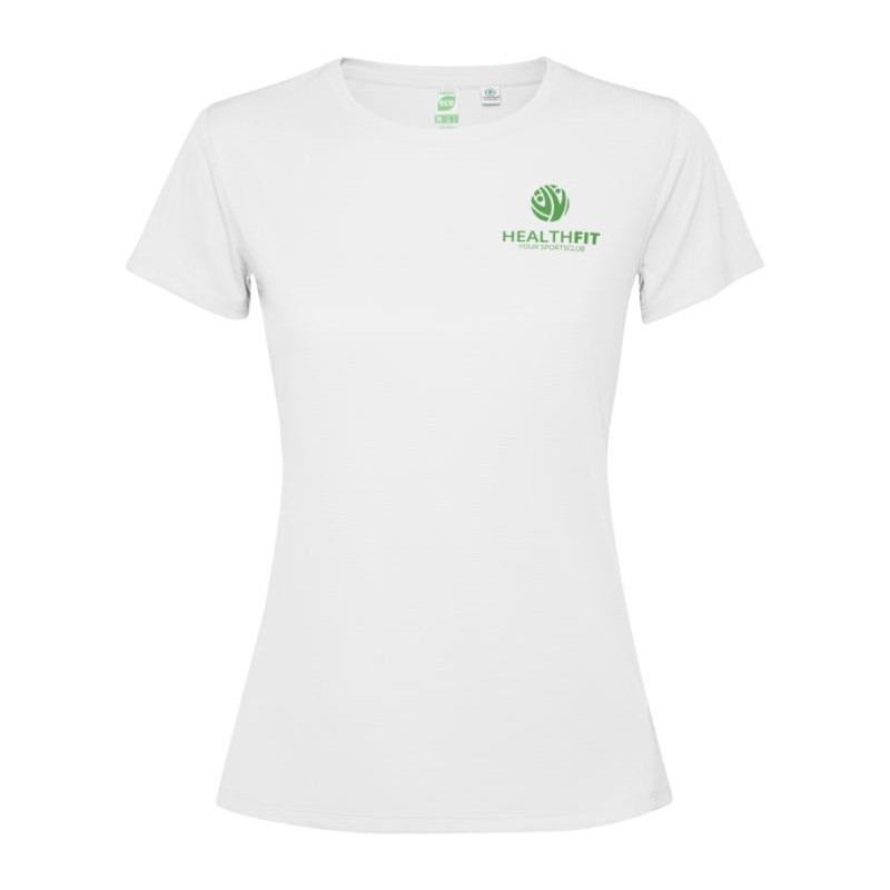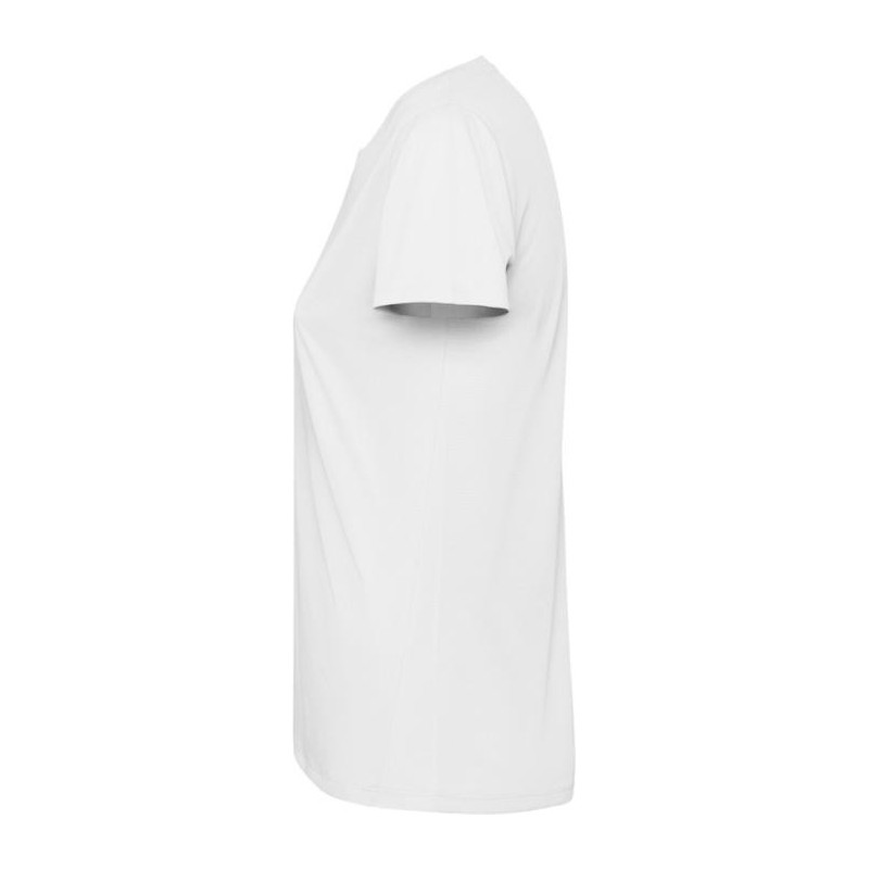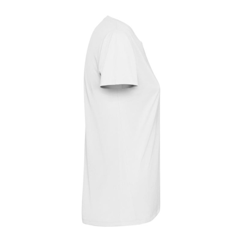T-shirt technique à manches courtes pour femme. Col avec coutures assorties. L’ourlet du dos est légèrement plus long que celui du devant. Coutures latérales décalées vers l’avant.