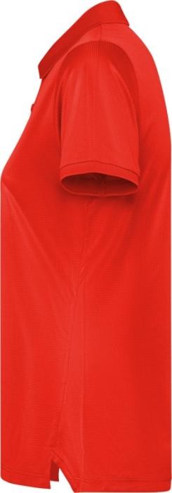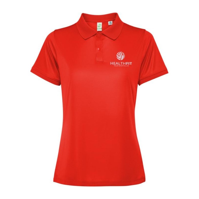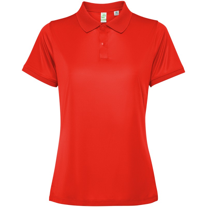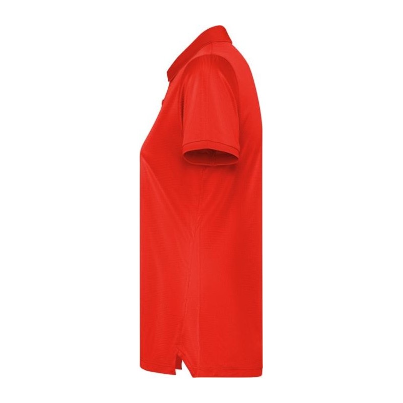 Polo à manches courtes ajusté pour femme. Surpiqûres renforcées au niveau du col intérieur. Poignets et col côtes 1x1. Coutures latérales. Patte de boutonnage à 3 boutons et fentes latérales.