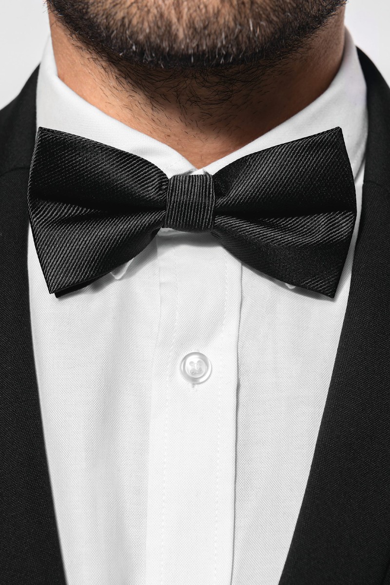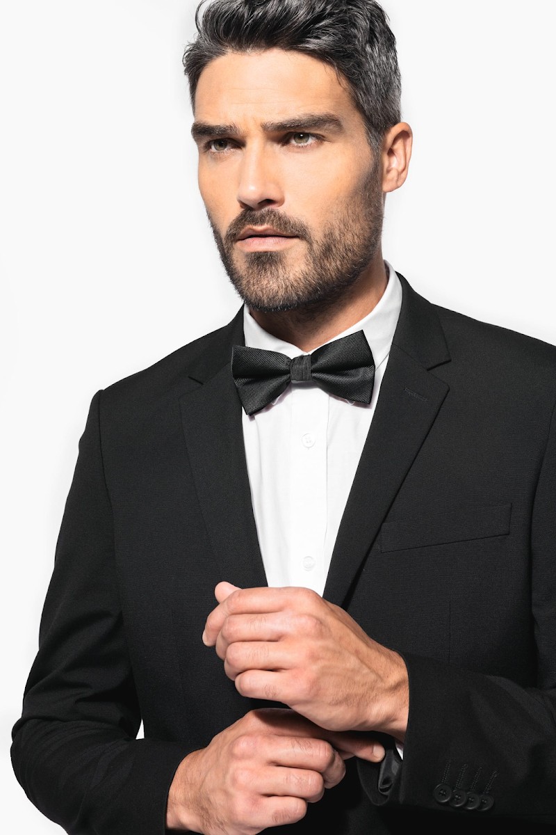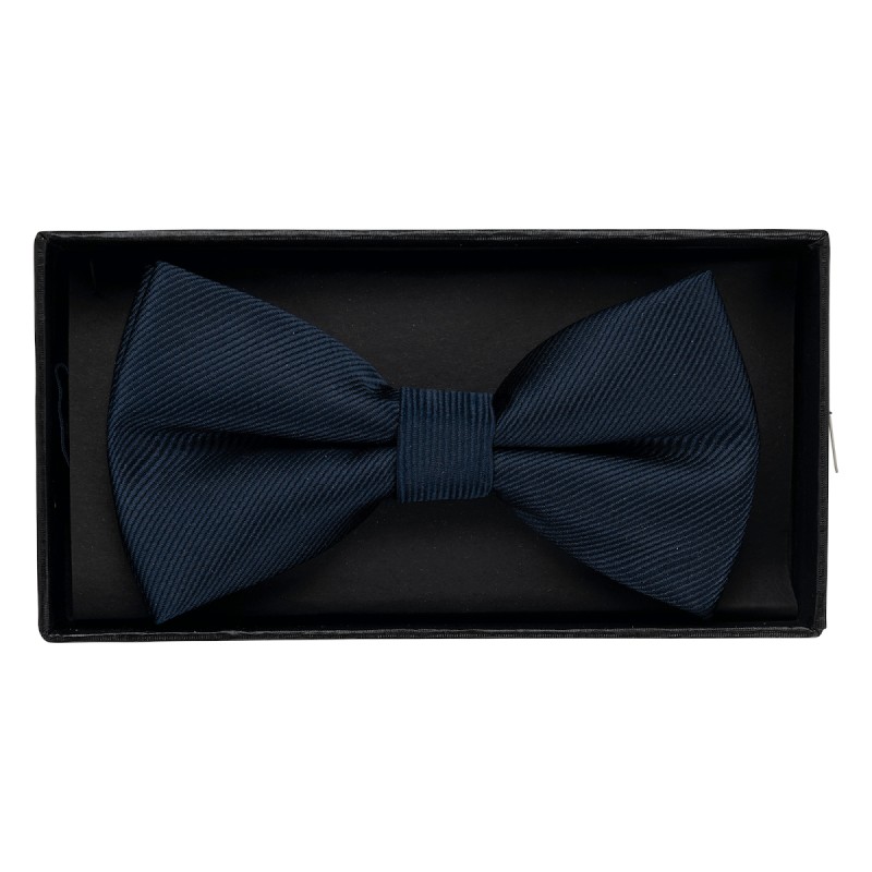 100% polyester. Nœud papillon classique en tissu sergé, idéal pour vos tenues de fêtes. Taille réglable et fermeture par un crochet en métal.