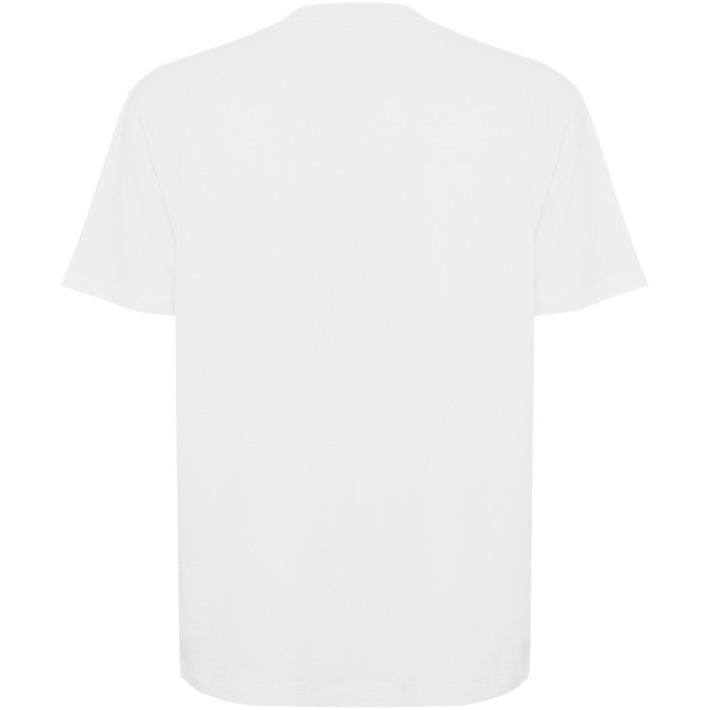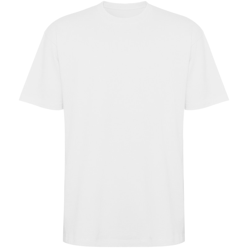 T-shirt à manches courtes oversize. Col rond bordé d'une côte 2x1 avec couvre-coutures assortis. Coutures latérales. Double piqûre large sur les manches et l'ourlet. Étiquette détachable.