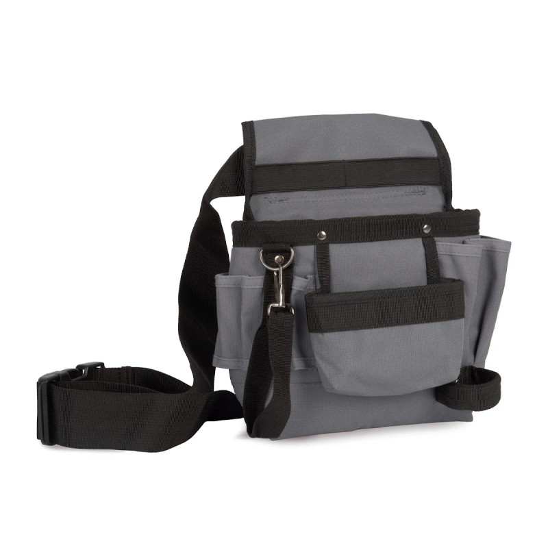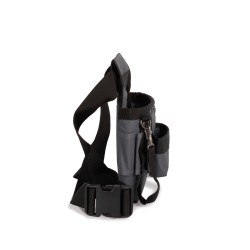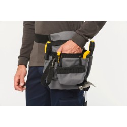100% polyester. Fourreau porte-outils, avec 8 compartiments et une bande porte-ruban adhésif. La ceinture réglable avec boucle est incluse. Poche avant ouverte facilement personnalisable.