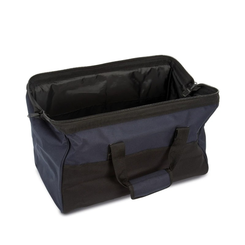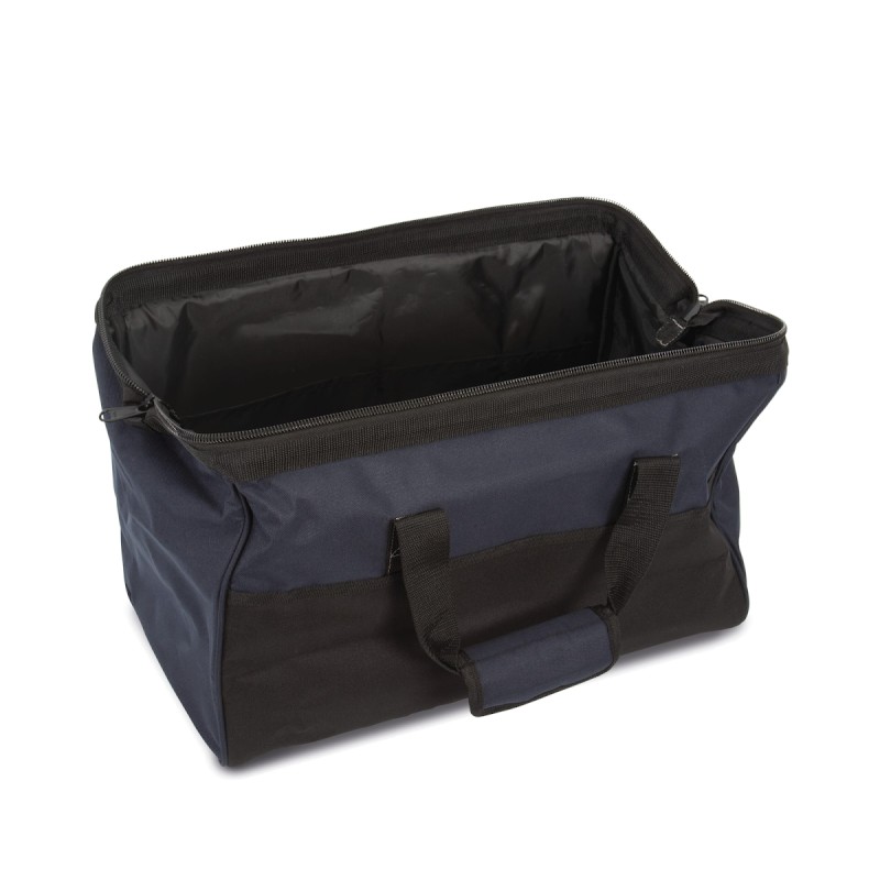 100% polyester. Sac à outils en polyester 600D. Idéal pour stocker ou transporter des outils électriques et des accessoires. Plusieurs poches sont disponibles pour organiser les outils et leurs accessoires. Il est composé d'une bandoulière renforcée pour un meilleur soutien et des poignées de transport très résistantes avec fermeture scratch pour une meilleure prise en main. Sur le dessus, il dispose d'une large ouverture rigide avec fermeture glissière industrielle facilitant le rangement du matériel. Le fond du sac et les pieds sont en caoutchouc pour une plus grande protection et renforcement du sac.