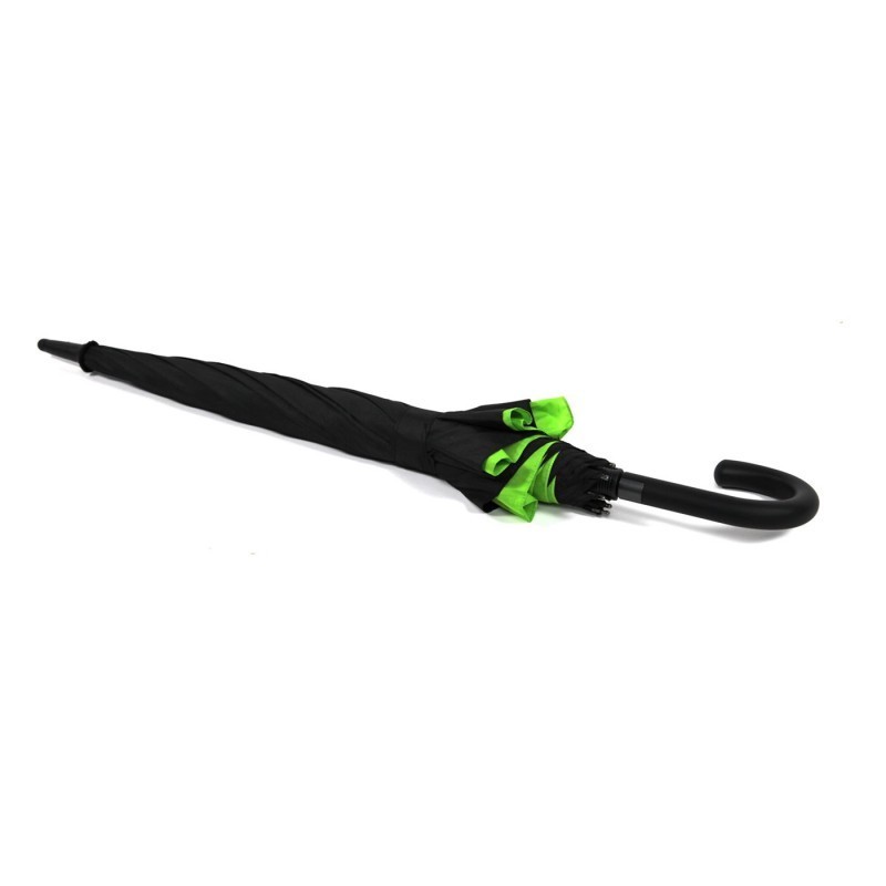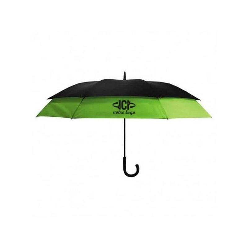 Fermé, à la dimension d'un parapluie classique peu encombrant avec poignée manche canne finition gomme noire ; ouvert, grâce à un système de repli astucieux, il prend la dimension d'un parapluie type golf permettant ainsi d'abriter sans difficulté deux personnes.