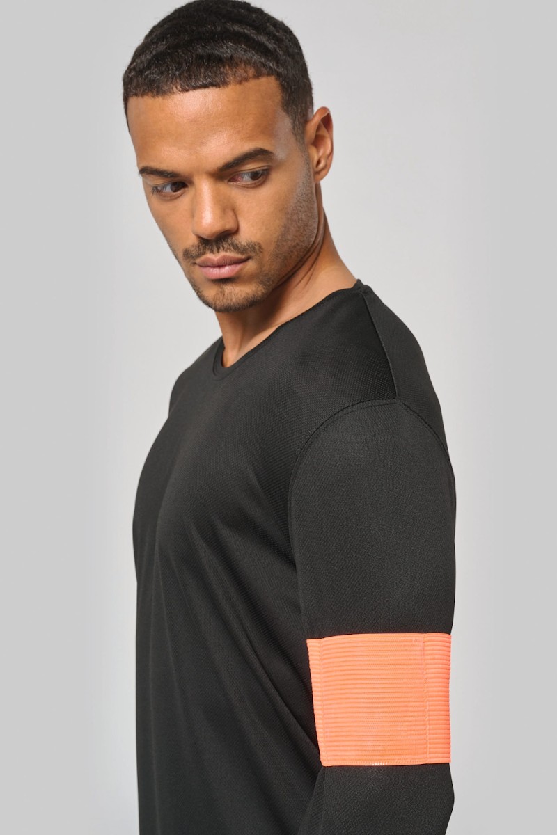 Brassard sans marquage. 70% polyester / 30% élasthanne. Fermeture par velcro blanc. Idéal pour la personnalisation avec le porte-étiquette transparent.