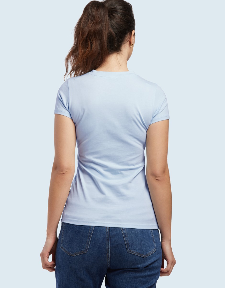 T-Shirt Femme Manches Courtes Made in France 100% coton biologique certifié OCS. Coton filé et peigné 180g/m², lavé et traité anti-boulochage. T-Shirt coupé cousu. Coupe ajustée. Bande de propreté au col. Col en bord côte 1x1 100% coton biologique. Confection 100% Française. Détail tricolore sur la couture latérale gauche en bas. Traitement silicone pour une meilleure tenue dans le temps. Toucher soyeux