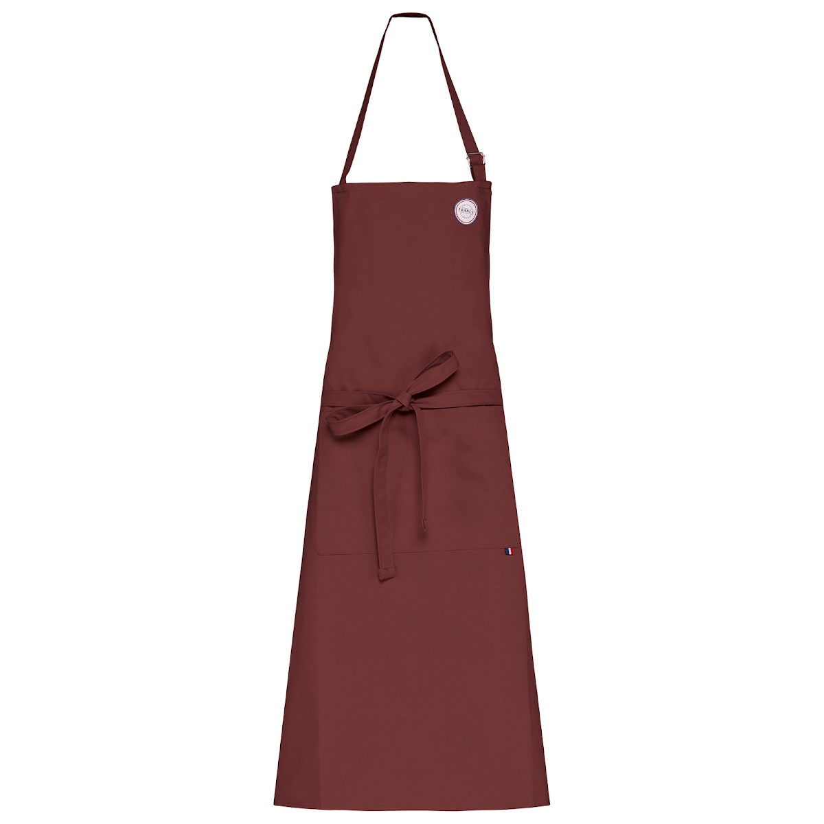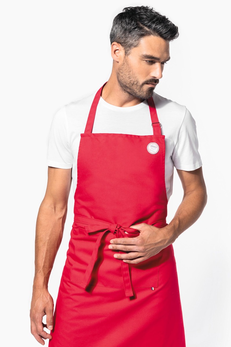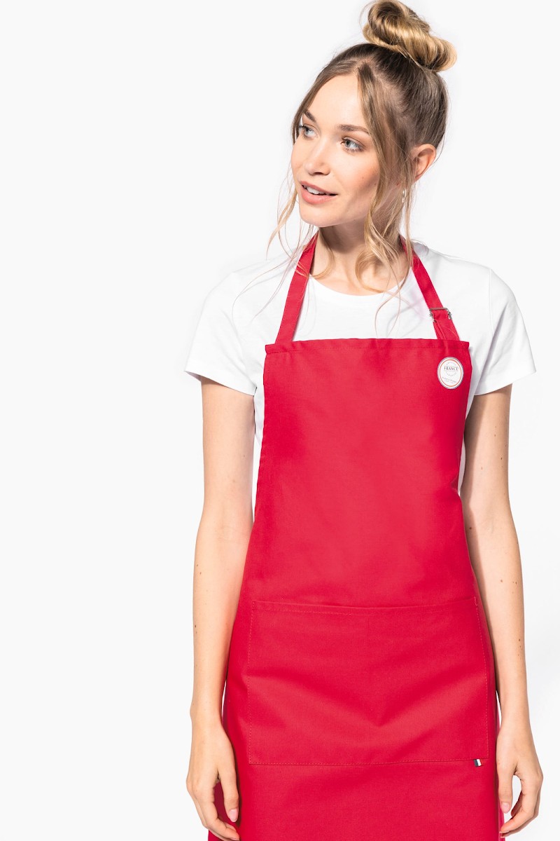 100% coton. Lavage domestique à 60°C. Longueur ajustable pour un meilleur confort. Étiquette tissée drapeau France sur poche avant. Produit labellisé "Origine France Garantie", fabriqué en Bretagne (label apposé sous forme d’autocollant).