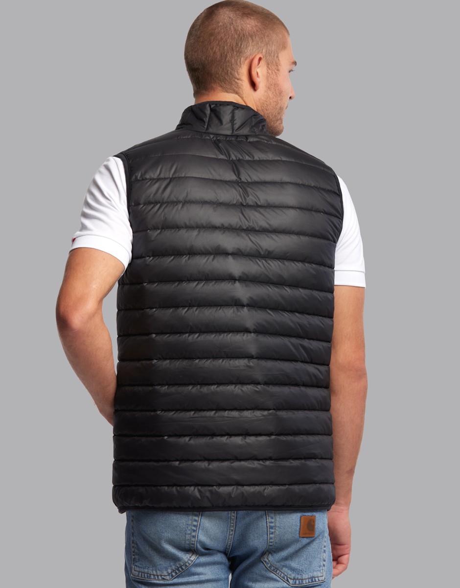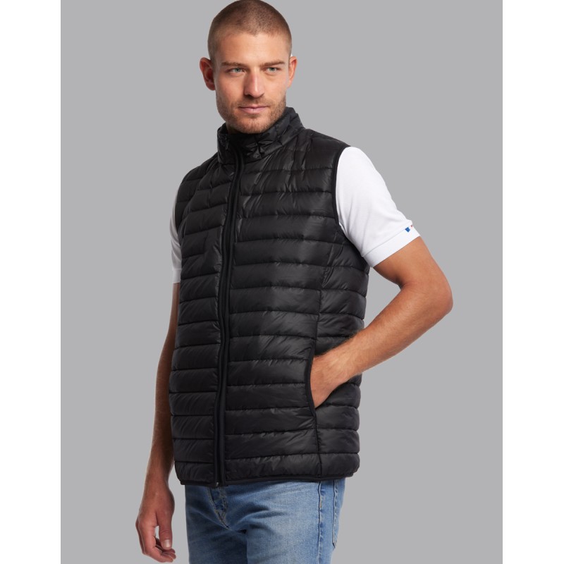 Doudoune sans manches Homme Made in France, fabriquée dans l'Oise. Coupe droite. Extérieur en polyester dont 30% de polyester recyclé, garnissage vegan en polyester. Matelassage fin. Coupe droite. Poches mains passepoilées. 2 poches intérieures plaquées. Zip central YKK imperméable. Disponible sur stock et livré sous 24/48h sans personnalisation, coloris disponibles : Noir, Marine dans les tailles S, M, L, XL, 2XL, 3XL, 4XL