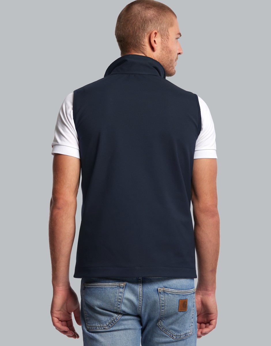 Bodywarmer softshell Homme Made in France en polyester recyclé. Confectionné dans l'Oise, ce bodywarmer est composé à 38% de polyester recyclé. Composition globale : 94% Polyester 6% Elasthanne. Softshell imperméable et respirante 3 couches avec membrane en TPU. Colonne d'eau 10000/3000 WP/BR. 2 poches mains passepoilées. 2 poches intérieures plaquées. Intérieur en micropolaire. ZIp central YKK imperméable. Coupe droite Disponible sur stock et livré sous 24/48h sans personnalisation, coloris disponibles : Noir, Marine, Gris dans les tailles S, M, L, XL, 2XL, 3XL, 4XL