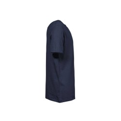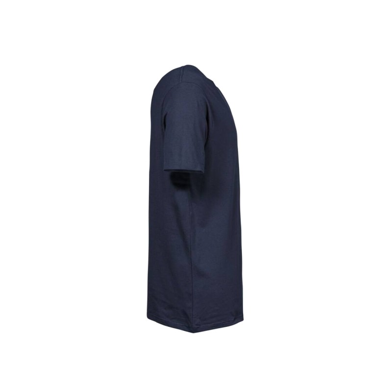 Coupe ajustée au niveau des épaules et des manches, corps ample. Bande de propreté d'épaule à épaule. Double couture.