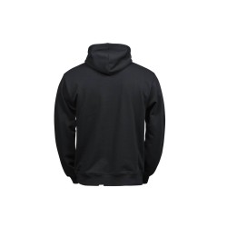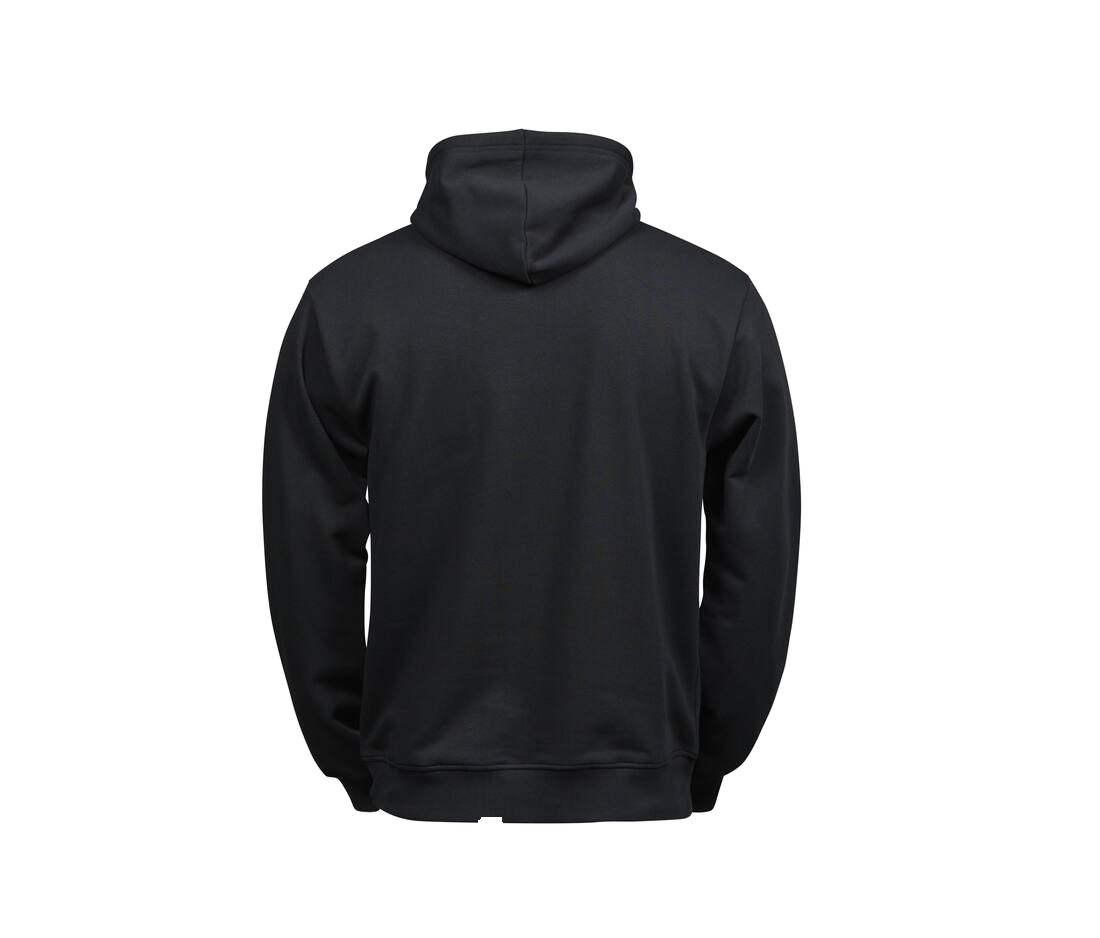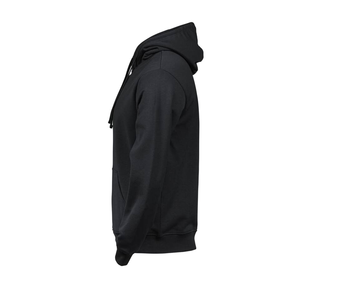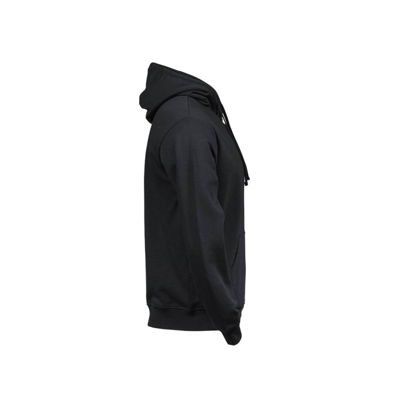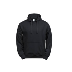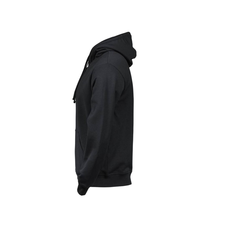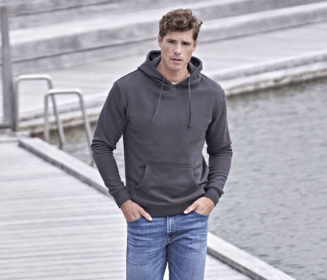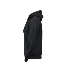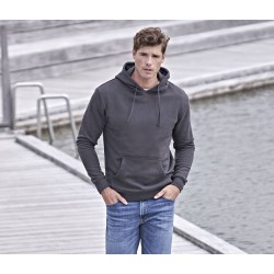 Mélange de coton bio et de polyester. Capuche et poche kangourou. Manches droites.