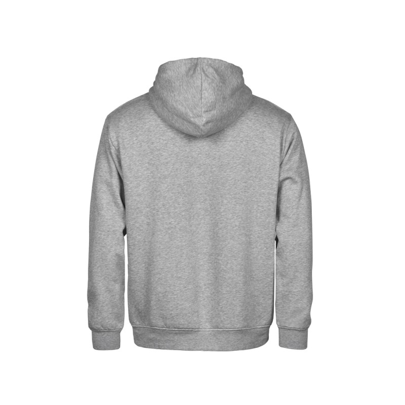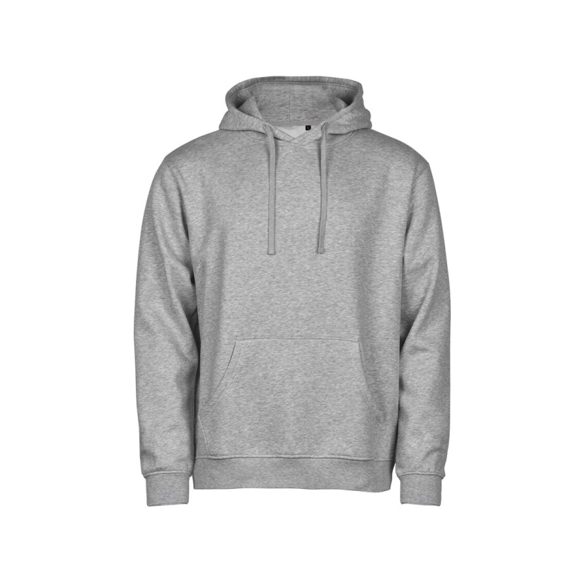 Mélange de coton bio et de polyester. Capuche et poche kangourou. Manches droites.