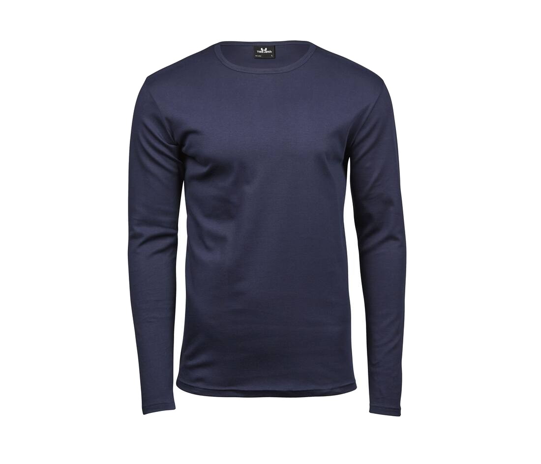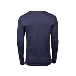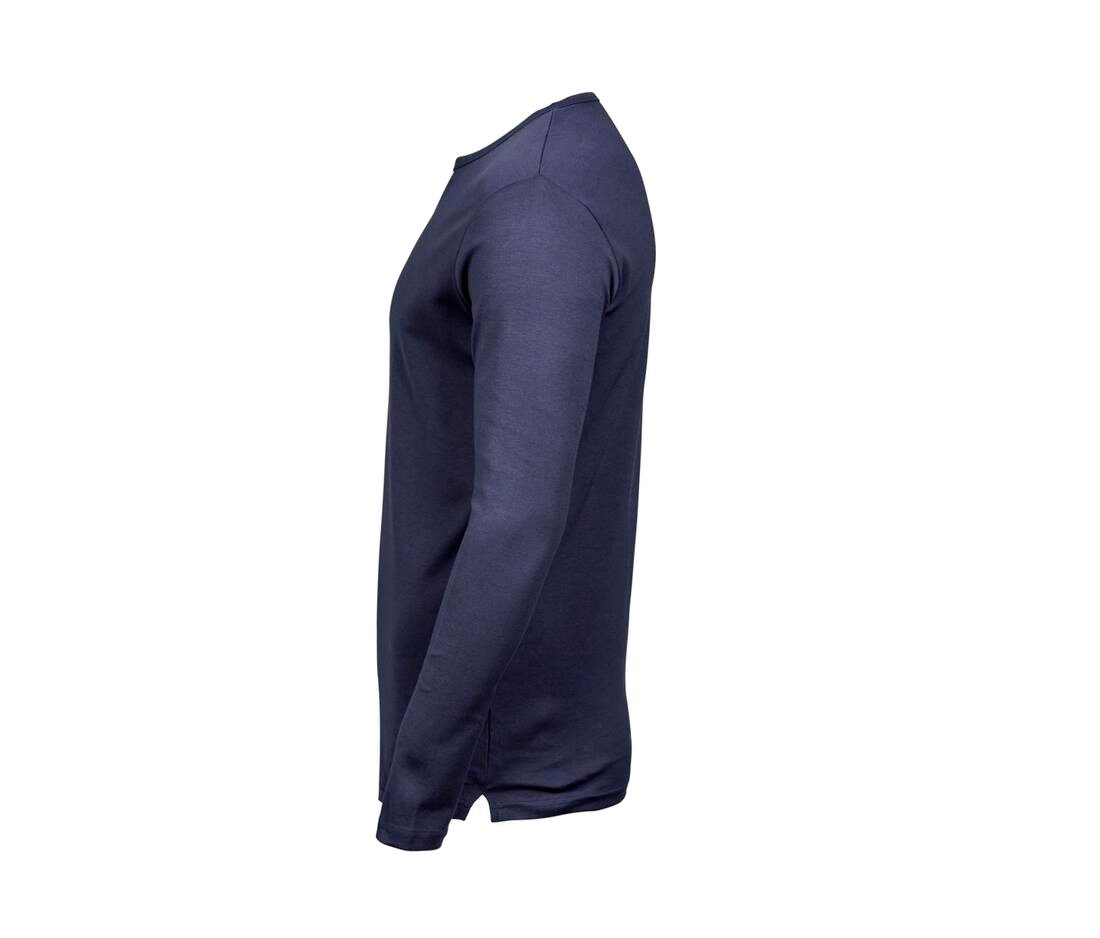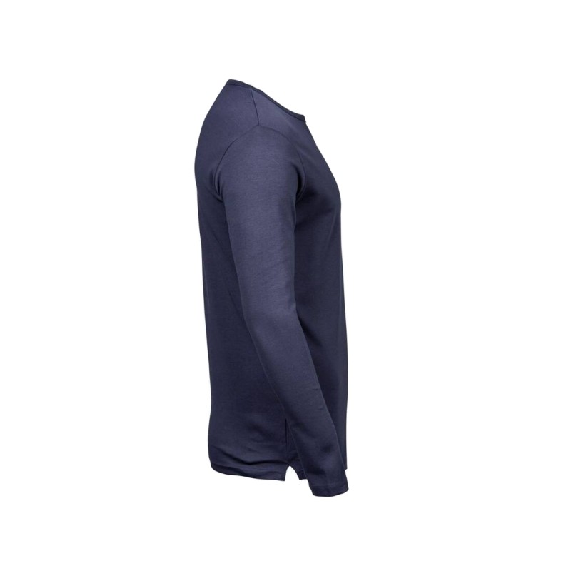 Double couture. Lavé aux enzymes et à la silicone pour un toucher doux et une meilleure élasticité. Coupe ajustée.
