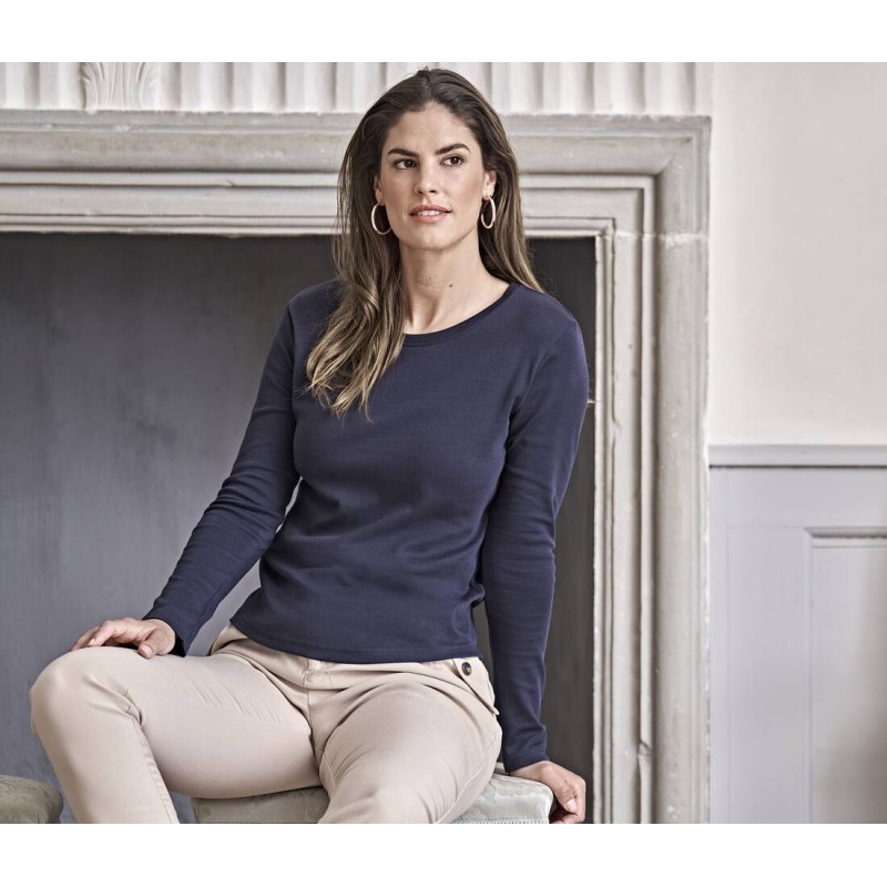 Double couture. Lavé aux enzymes et à la silicone pour un toucher doux et une meilleure élasticité. Coupe ajustée.