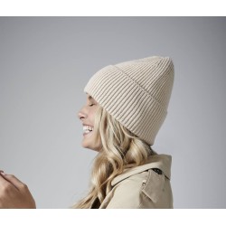 Contient 50% de polyester recyclé minimum. Tricot à mailles. Avec revers large pour une décoration optimale.
