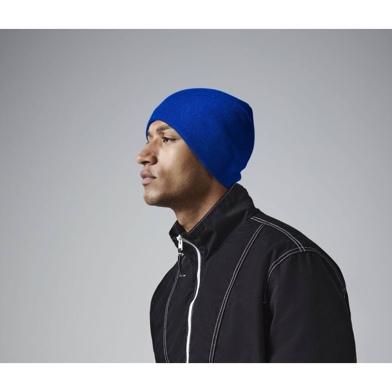 Bonnet doublé à enfiler. Polyester recyclé, certifié par Control Union CU811033. Étiquette détachable.