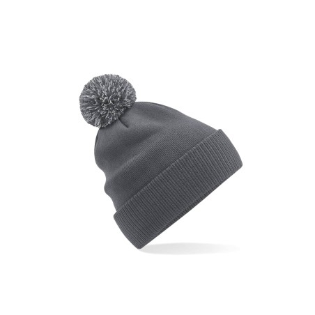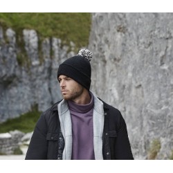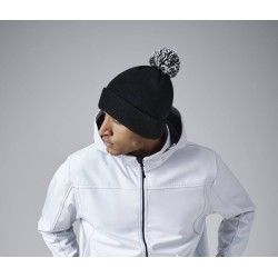 Doublé. Pompon bicolore. Double style - se porte avec ou sans revers.