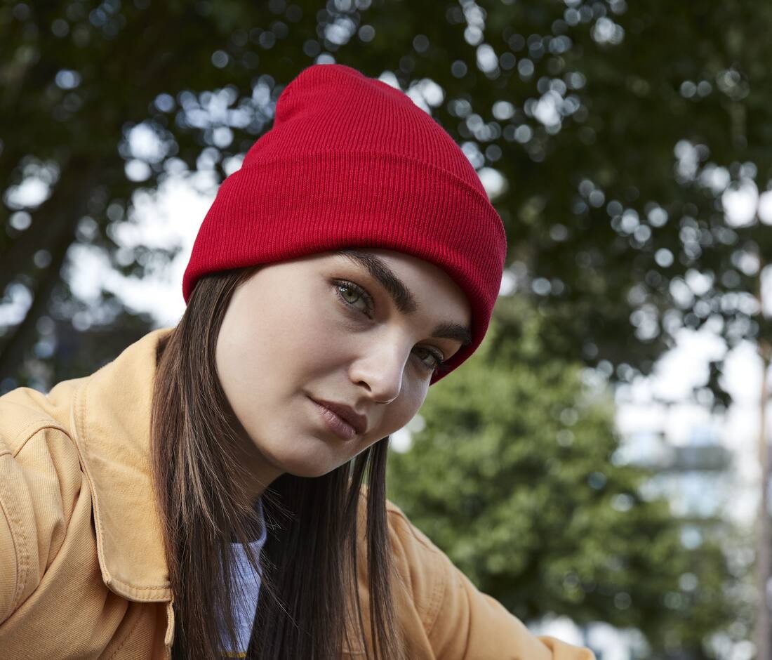 Bonnet doublé, avec rabat. Étiquette détachable. Coton organique, certifié par Control Union CU811033.
