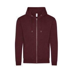 Sweat-shirt zippé à capuche. Fermeture Éclair YKK métallique couverte. Capuche doublée avec cordons de serrage ton sur ton.