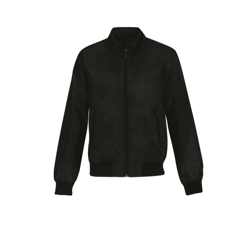 Imperméable, respirant et coupe-vent. Capuche ergonomique (ajustable grâce à un élastique sur le dessus) intégrée dans le col. Col "bomber". Poignets et bords inférieurs en côtes. Fermeture Éclair® SBS ton sur ton. 2 poches avant avec fermeture Éclair®. Accès personnalisation.