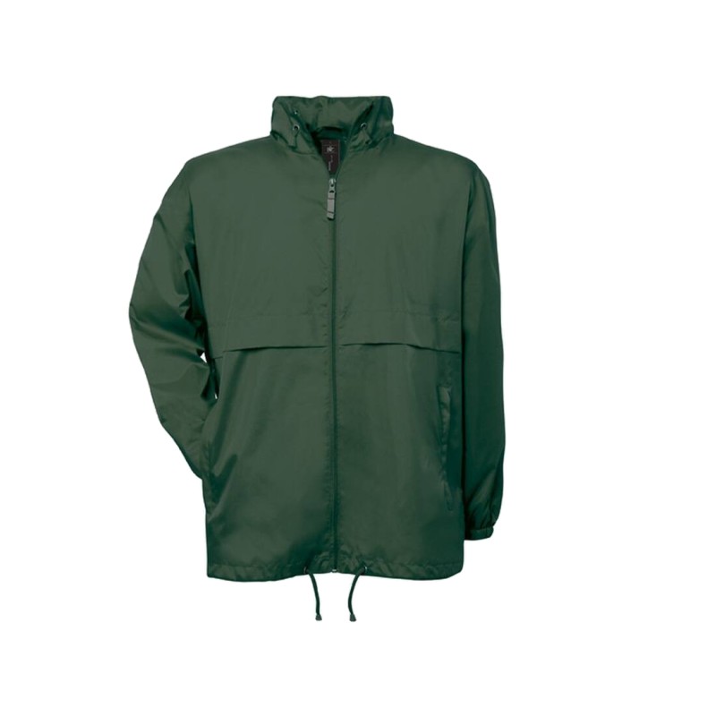 Coupe-vent imperméable. Doublure filet anti-sudation. Capuche dans le col. Accès pour personnalisation. Veste repliable dans la poche.