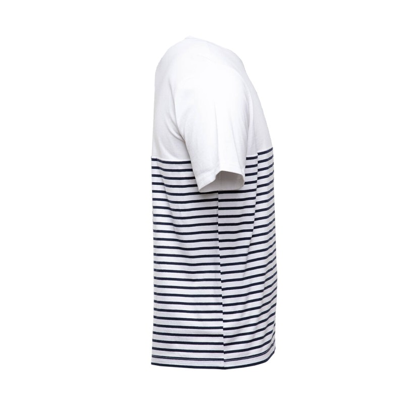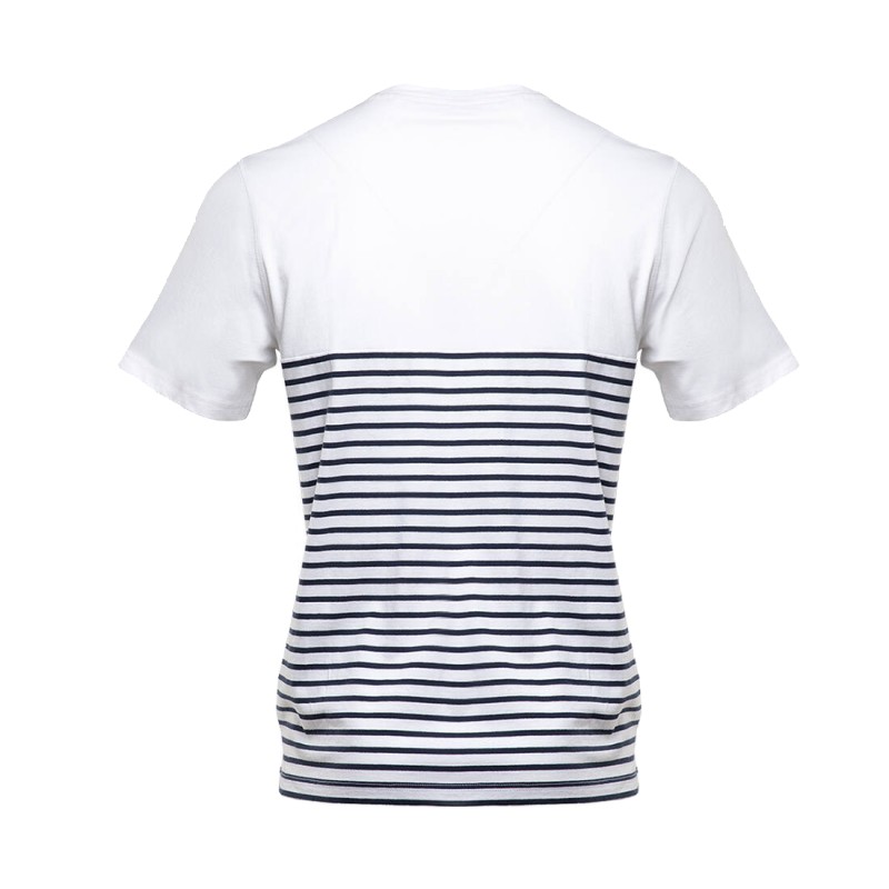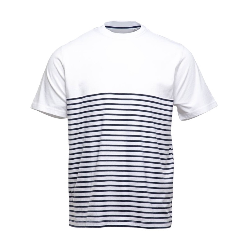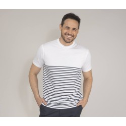 Manches courtes et droites. Rayures commençant à 20 cm du col. Col avec élasthanne.