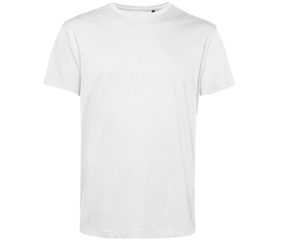 Tee-shirt homme col rond 150 organique ou organique en conversion. Coupe tubulaire. Col en bords côte 1x1. Sans étiquette de marque.