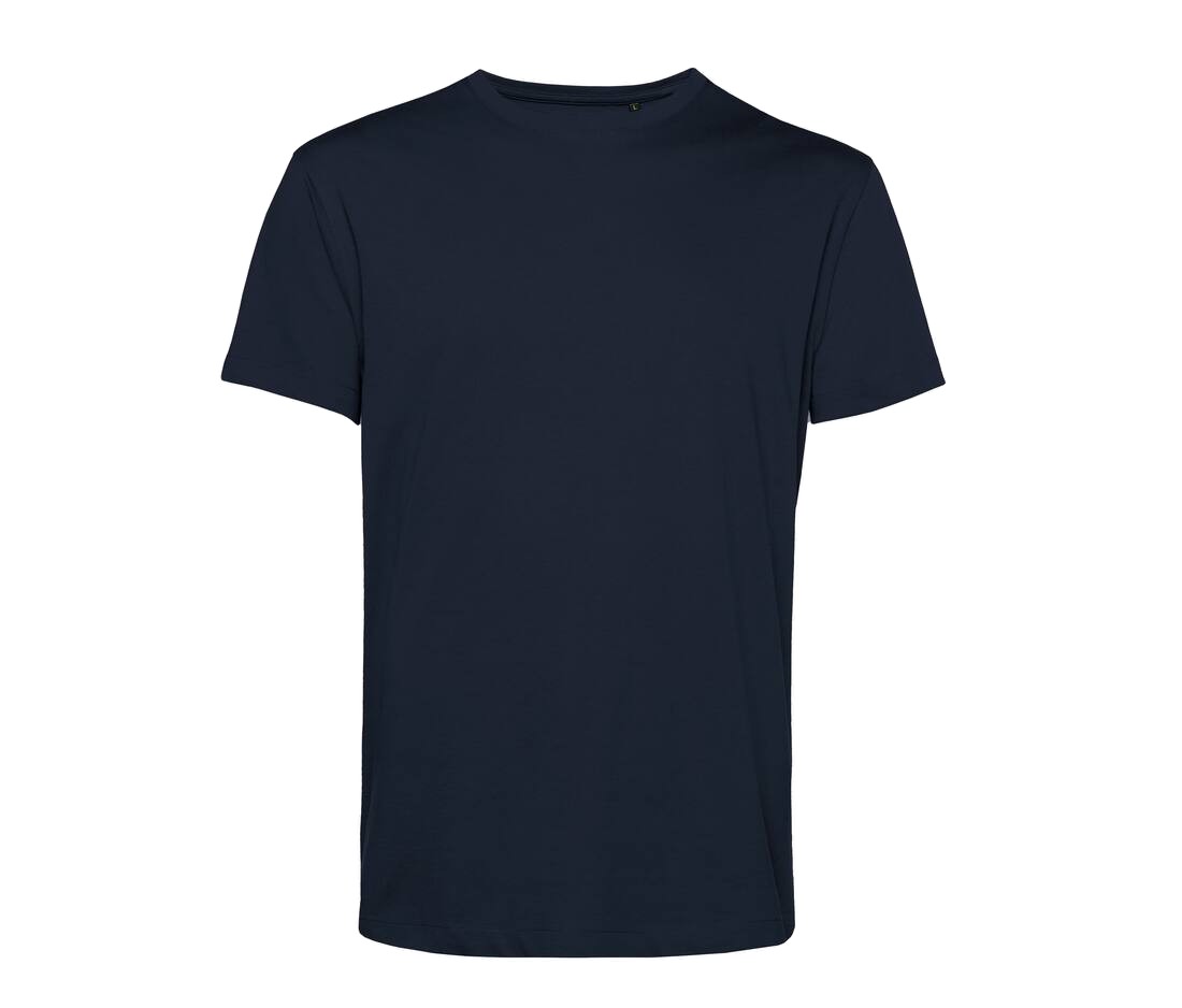Tee-shirt homme col rond 150 organique ou organique en conversion. Coupe tubulaire. Col en bords côte 1x1. Sans étiquette de marque.