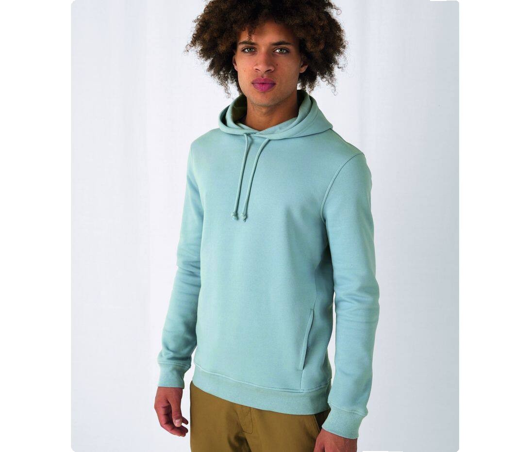 Sweat-shirt à capuche, organique ou organique en conversion et au design tendance. Capuche doublée avec cordon. Bande de propreté en chevron.