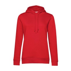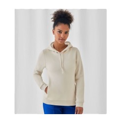 Sweat-shirt femme à capuche, organique ou organique en conversion et au design tendance. Capuche doublée avec cordon. Bande de propreté en chevron.