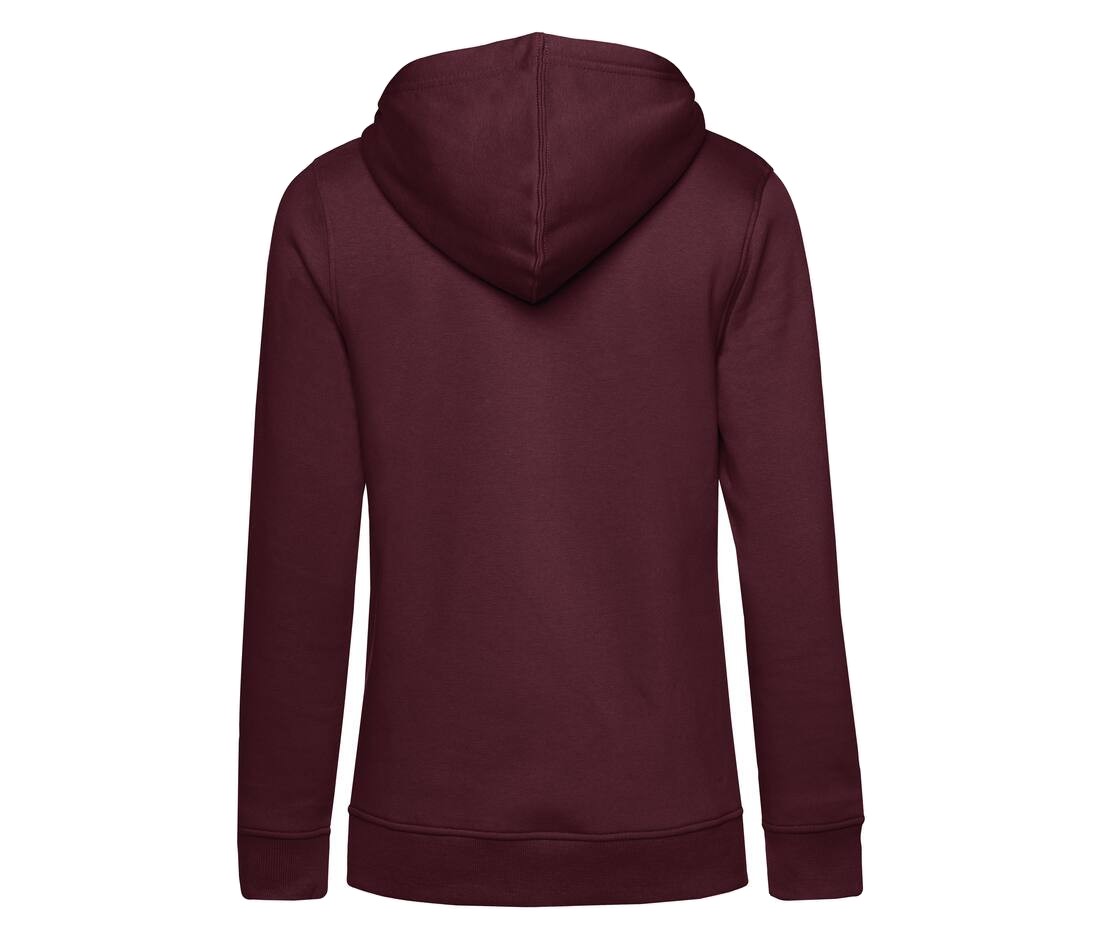 Sweat-shirt femme à capuche, organique ou organique en conversion et au design tendance. Capuche doublée avec cordon. Bande de propreté en chevron.