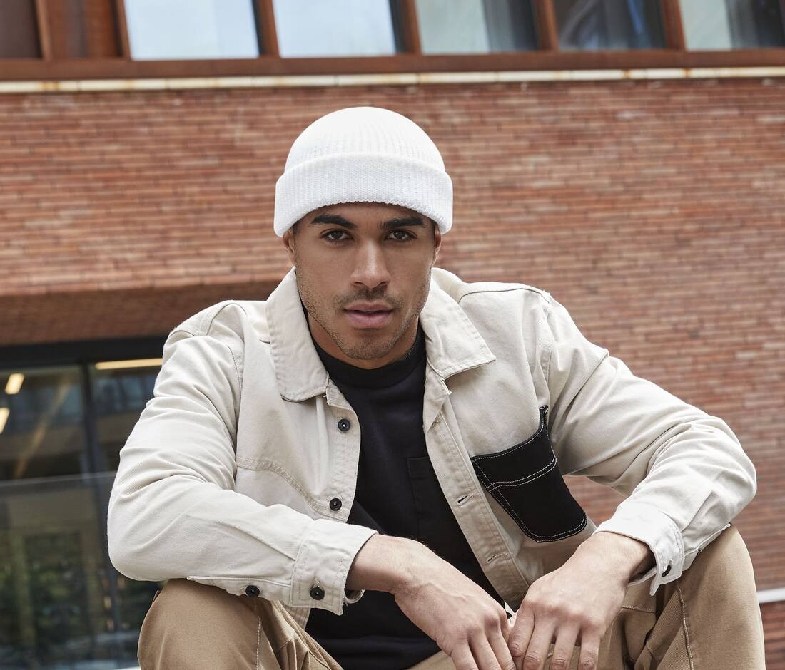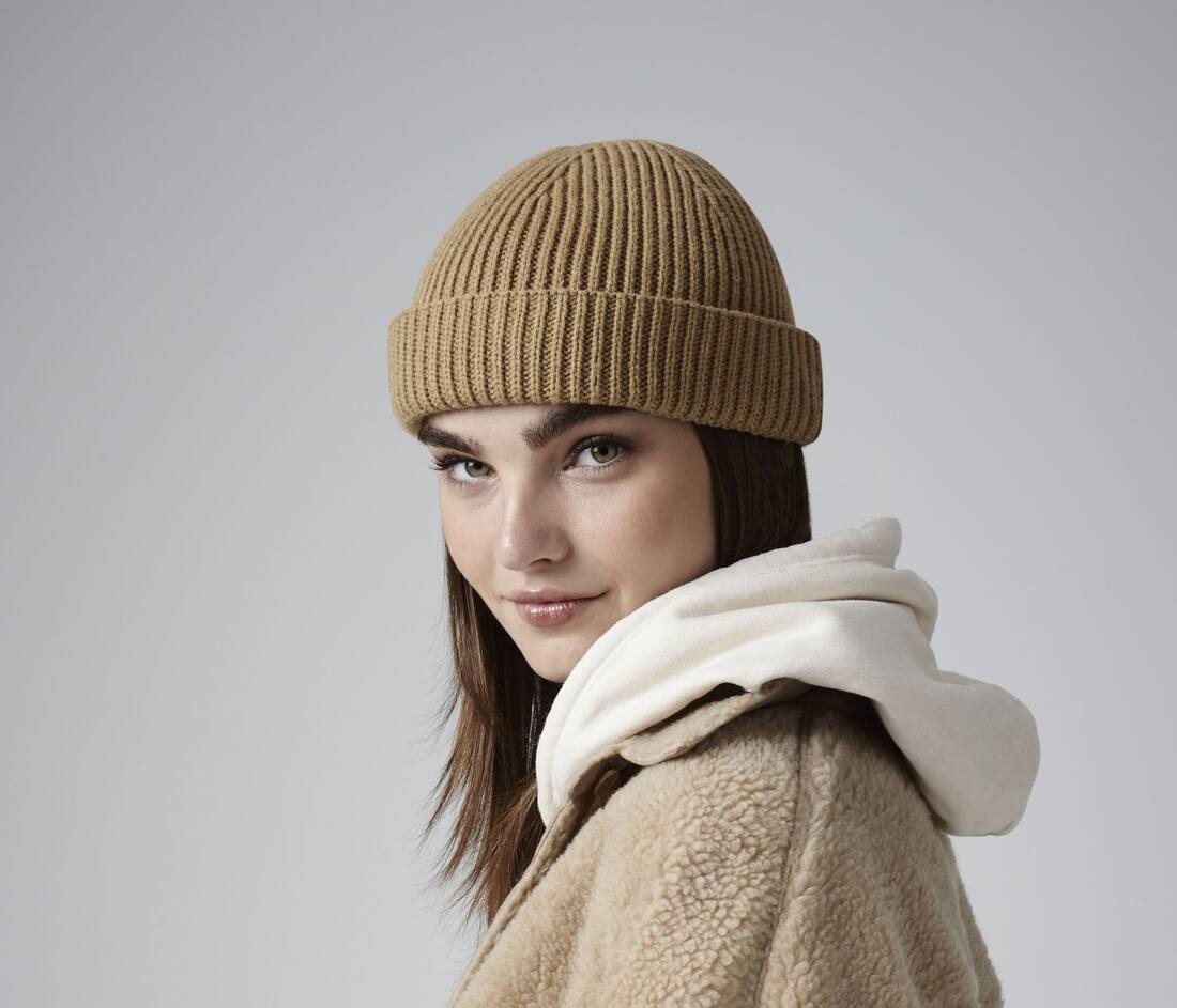 Bonnet court. Contient 50% de polyester recyclé minimum. Tricot à mailles.