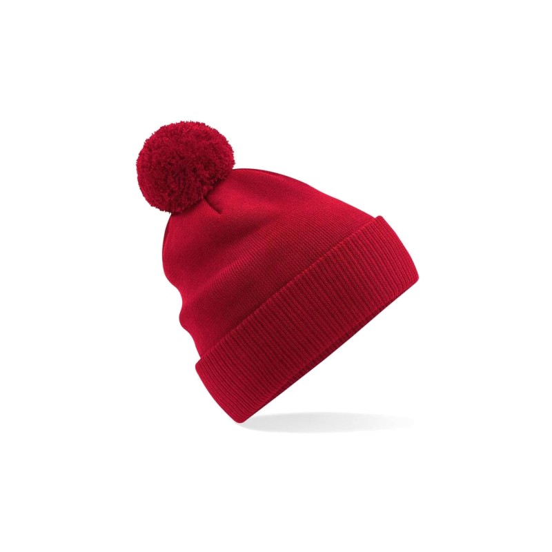 Revers à mailles. Pompon de même couleur. Double style - se porte avec ou sans revers.