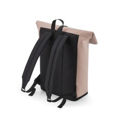 Tissu déperlant. Pochette intérieure rembourrée pour ordinateur portable (max 15,6"). Fermeture à enroulement et clip.