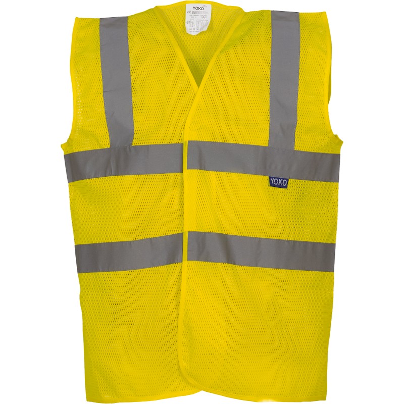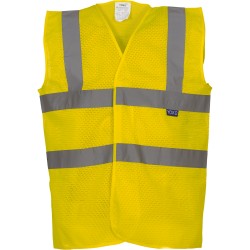 100% polyester. 100% polyester recyclé. Fabriqué à partir de bouteilles en plastique PET. Maille légère respirante. Bandes réfléchissantes de 5 cm de large autour du corps et une sur chaque épaule. Fermeture par Velcro® à l'avant . Conforme à la norme nationale américaine ANSI/ISEA 107-2004 et à la norme EN ISO20471:2013 catégorie 2 : uniquement Hi Viz Orange et Hi Viz Yellow.