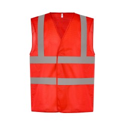 100% polyester. 100% polyester recyclé. Fabriqué à partir de bouteilles en plastique PET. Maille légère respirante. Bandes réfléchissantes de 5 cm de large autour du corps et une sur chaque épaule. Fermeture par Velcro® à l'avant . Conforme à la norme nationale américaine ANSI/ISEA 107-2004 et à la norme EN ISO20471:2013 catégorie 2 : uniquement Hi Viz Orange et Hi Viz Yellow.